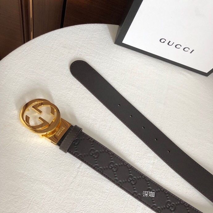 Gucci Men s Interlocking GG Metal Buckle Belt 4cm