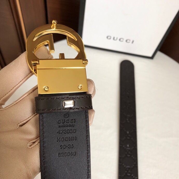 Gucci Classic leisure/business brass resin craft automatic hardware Reversible leather belt