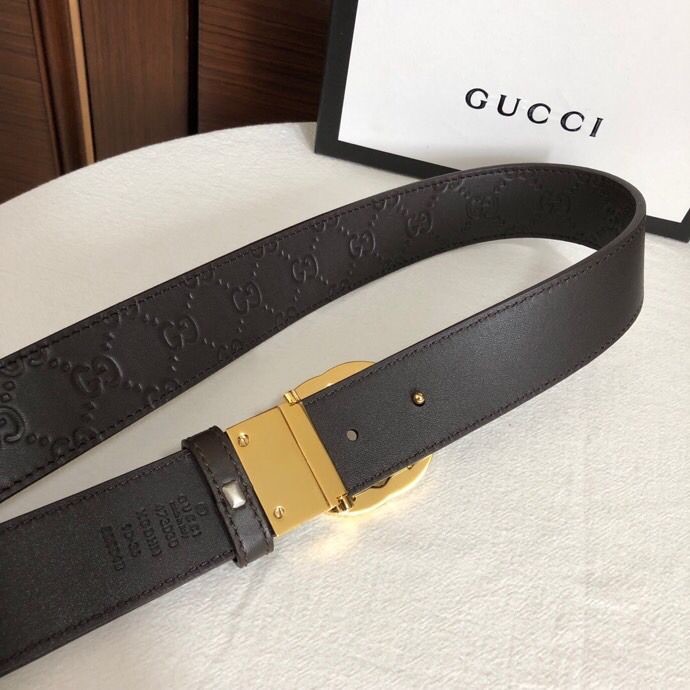 Gucci GG rotating metal buckle Logo embossed belt 36mm men s belt