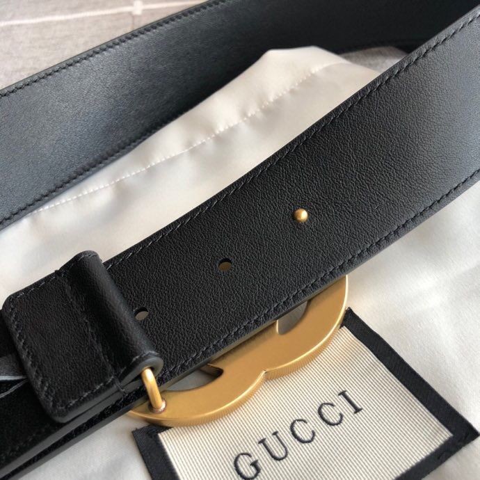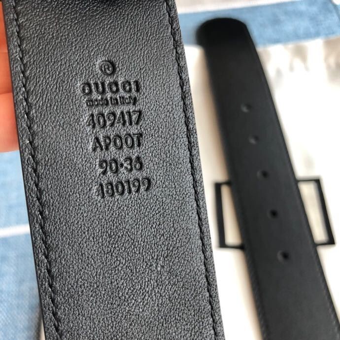 Gucci Exquisite square metal buckle GG embossed black cowhide belt 35mm