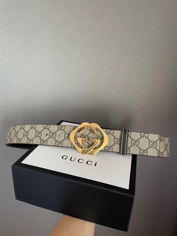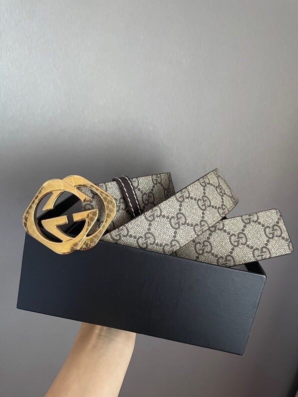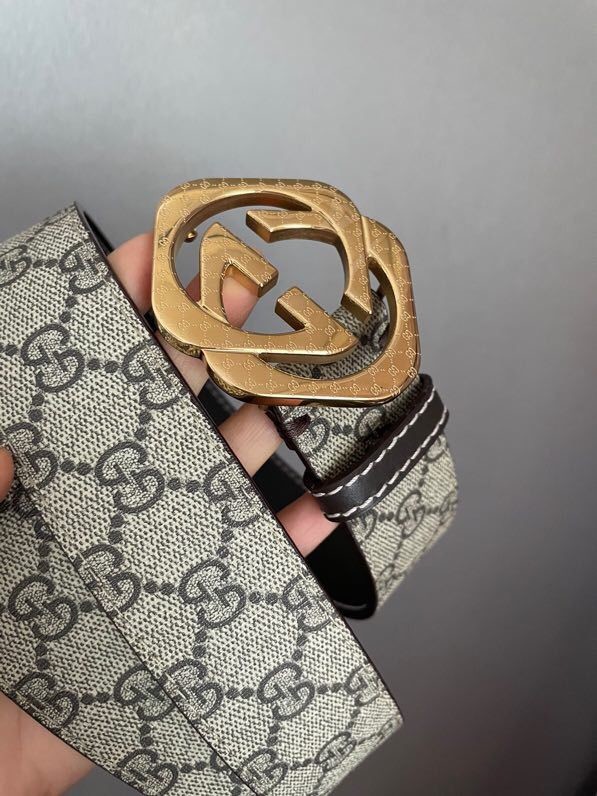 Gucci Men s PVC GG stainless steel diamond carving pattern metal buckle 38mm belt