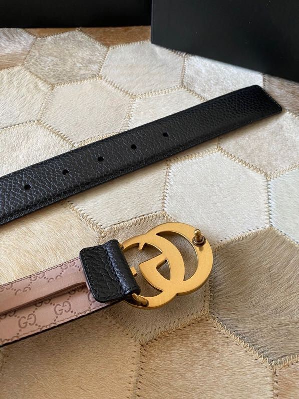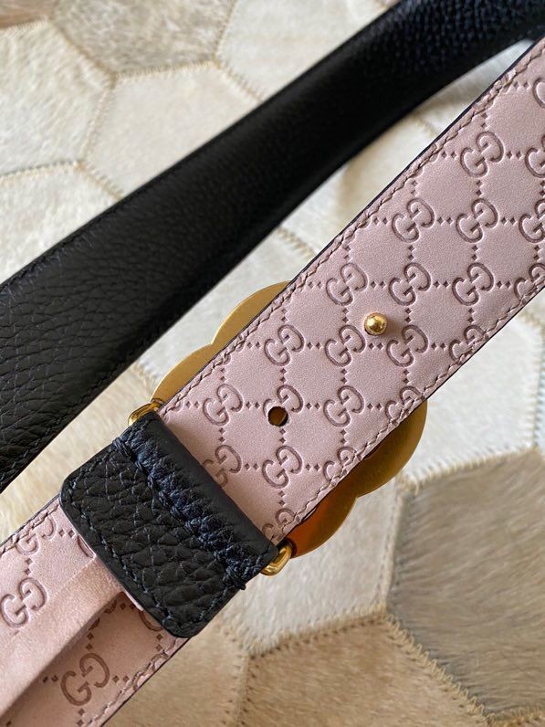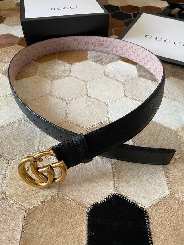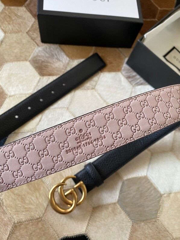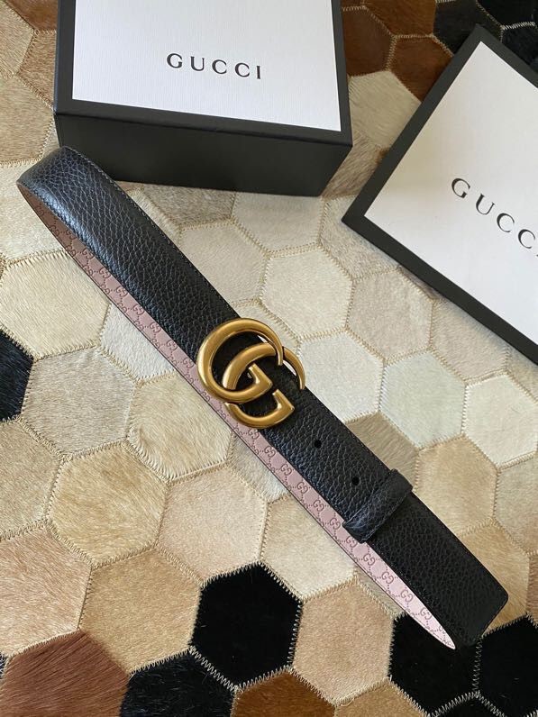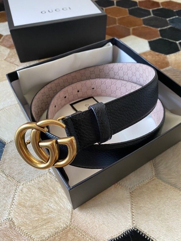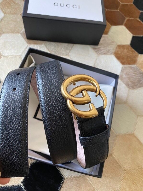 Gucci 3.5cm full leather black gold buckle/silver buckle GG belt