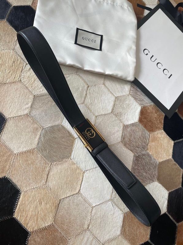 Gucci Classic leisure/business brass resin craft automatic hardware Reversible leather belt