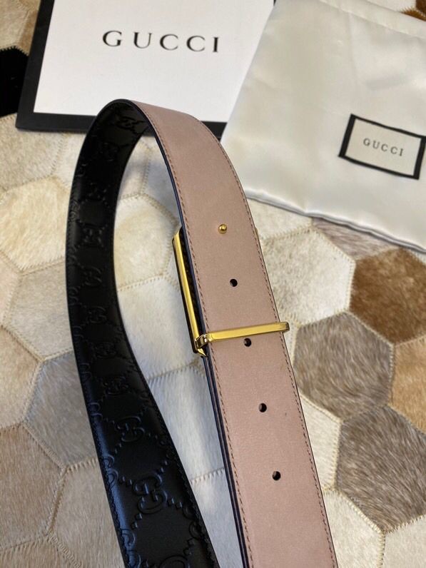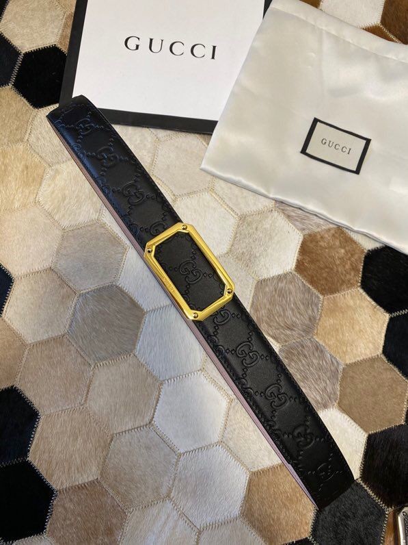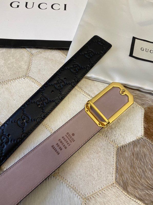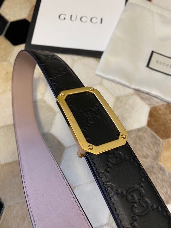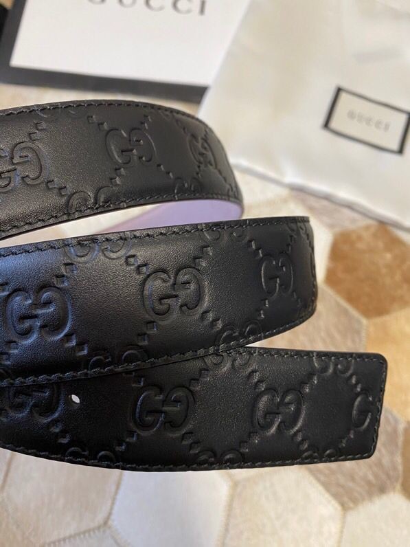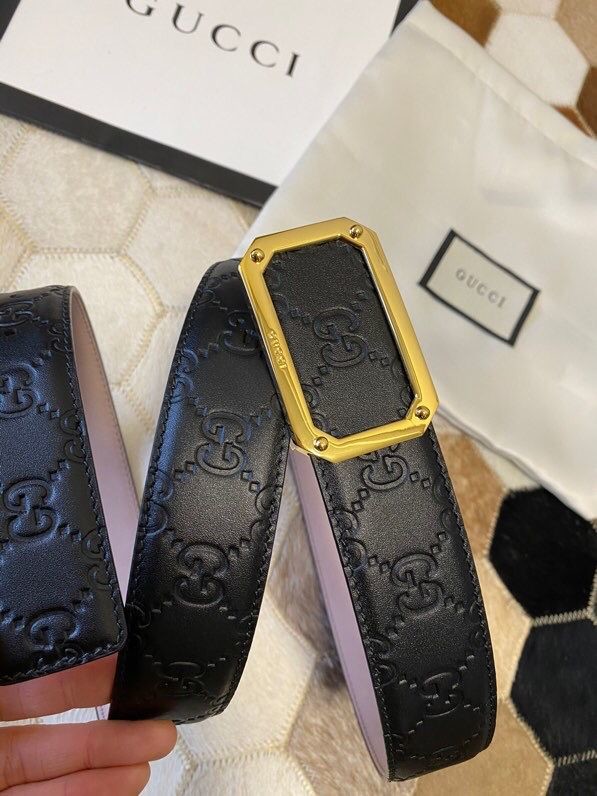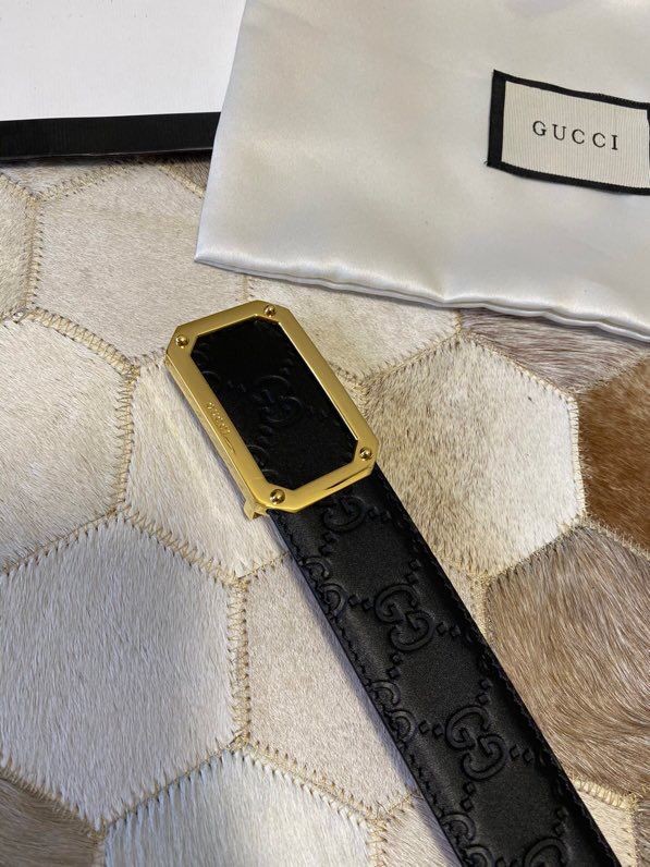 Gucci Exquisite square metal buckle GG embossed black cowhide belt 35mm