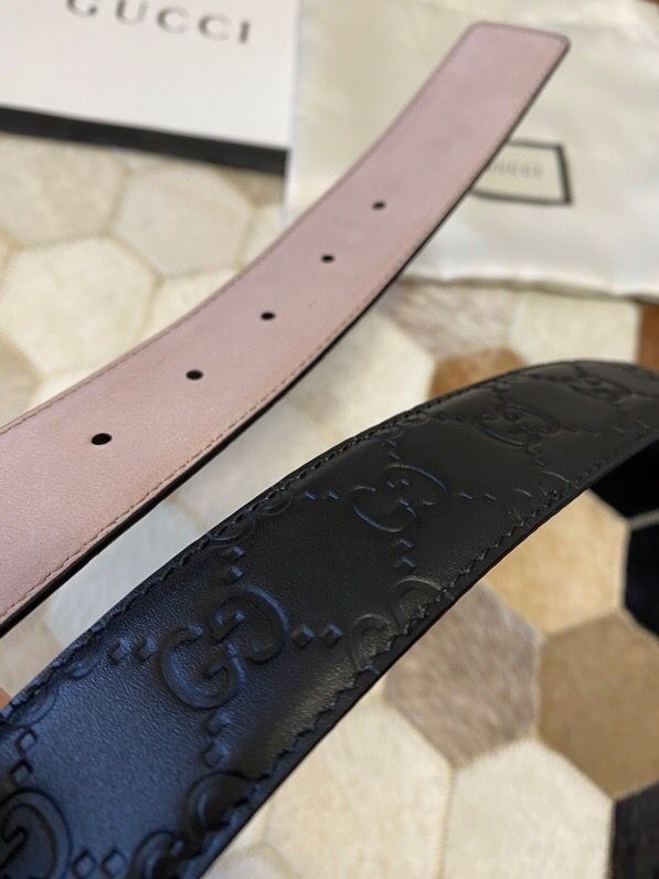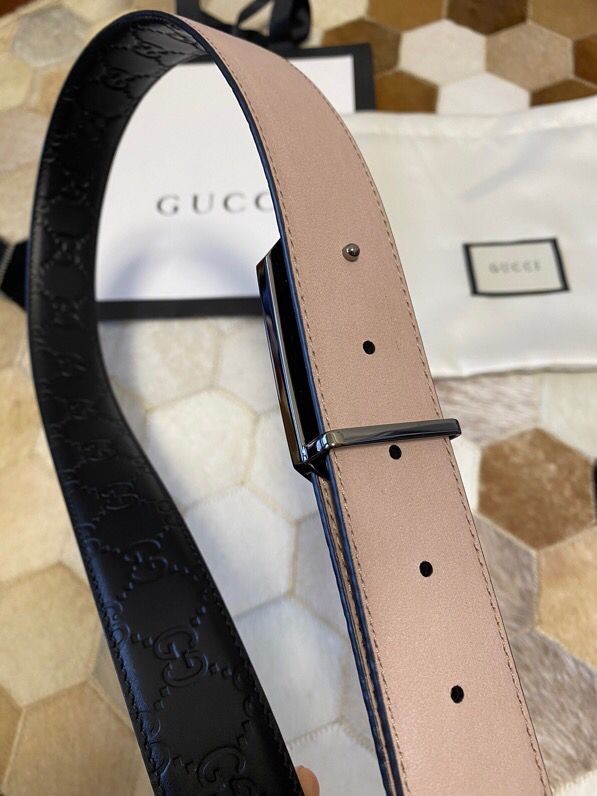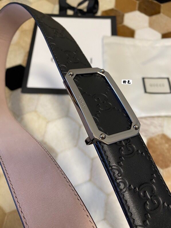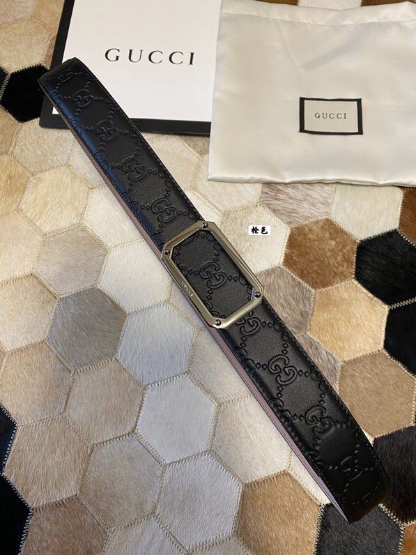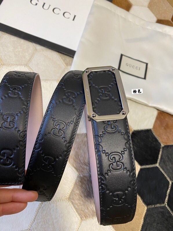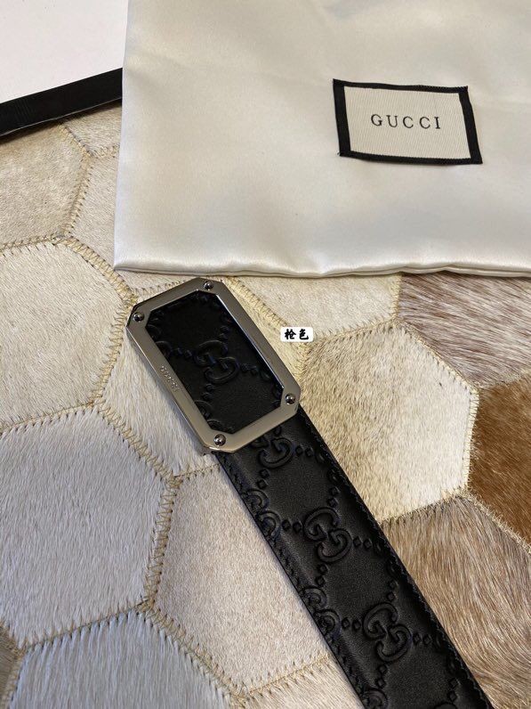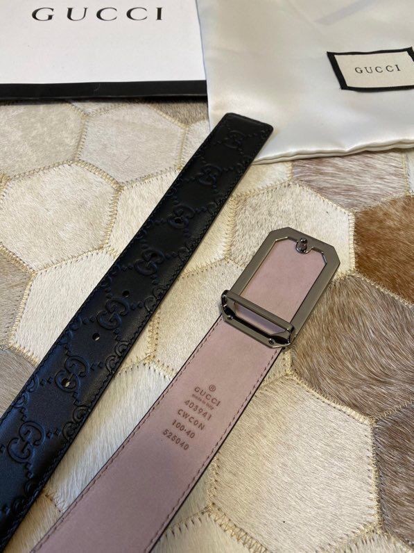 Gucci Exquisite square metal buckle GG embossed black cowhide belt 35mm