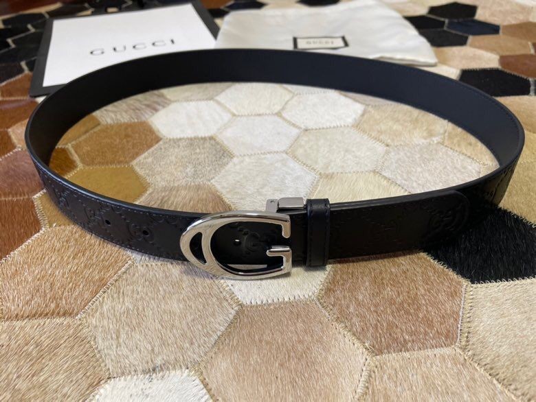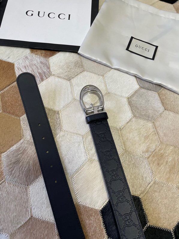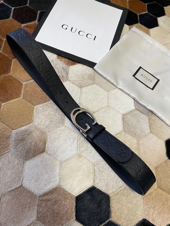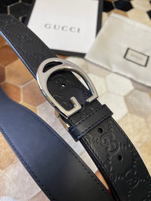 Gucci G-shaped metal buckle leather embossed leather belt 35mm