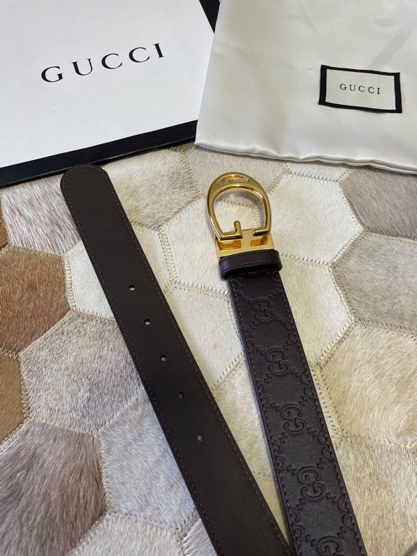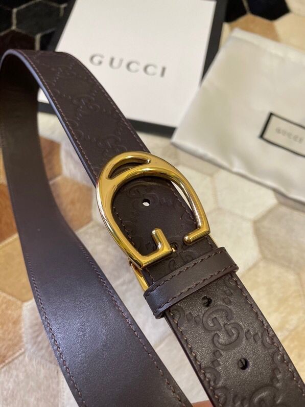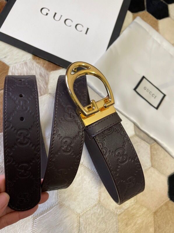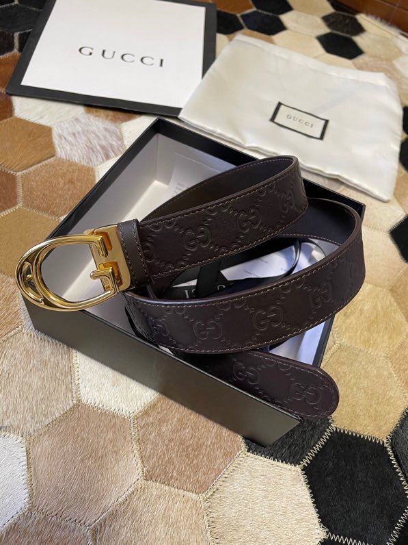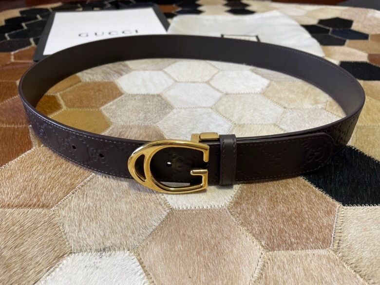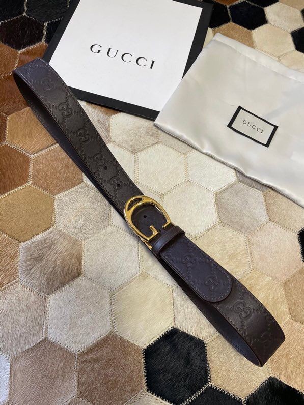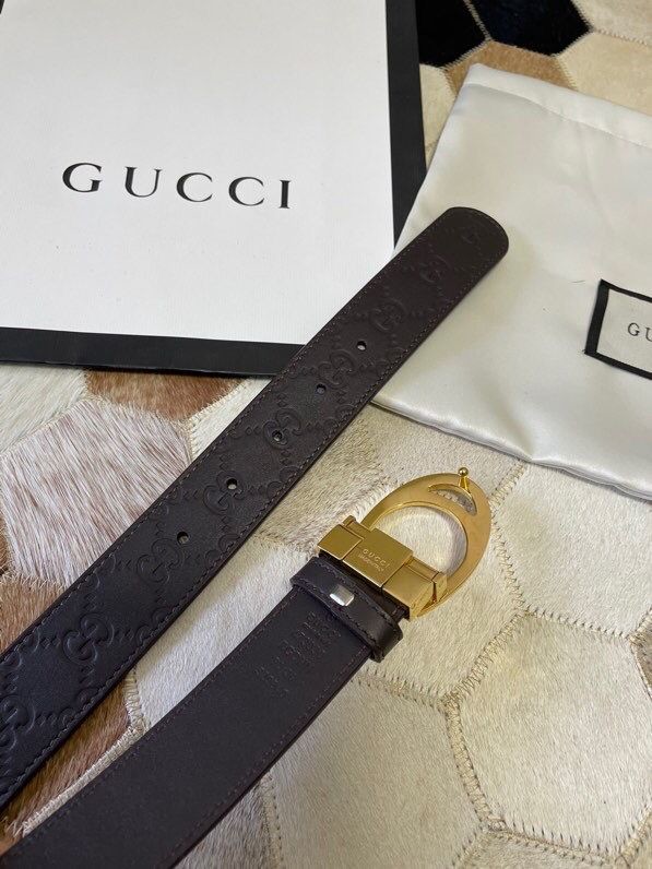 Gucci G-shaped metal buckle leather embossed leather belt 35mm