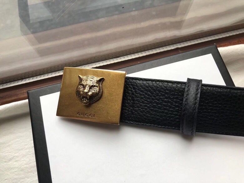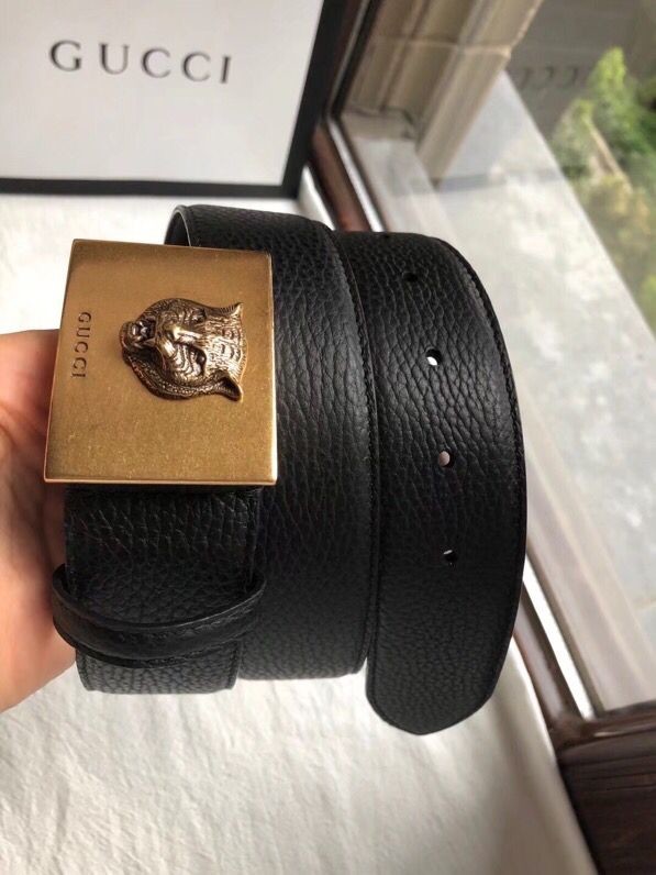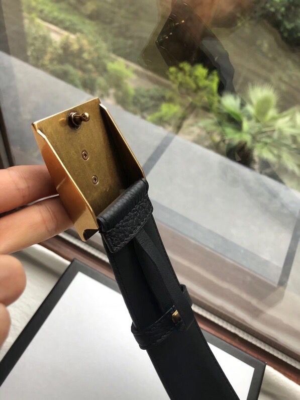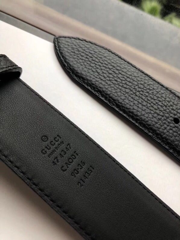 Gucci Exquisite square metal buckle GG embossed black cowhide belt 35mm