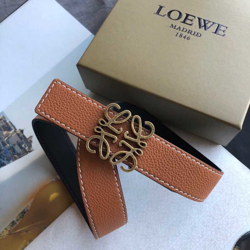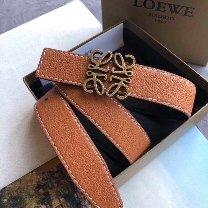 Loewe 3.2cm cowhide belt with gold vintage metal buckle