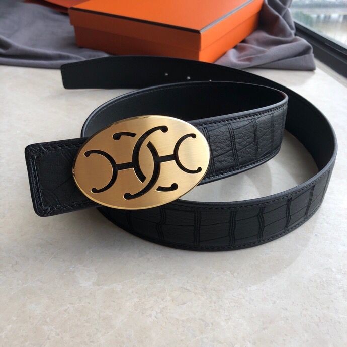 Hermes Stainless steel hollow hanging buckle leather men s 3.8cm belt