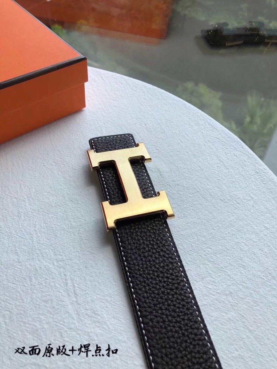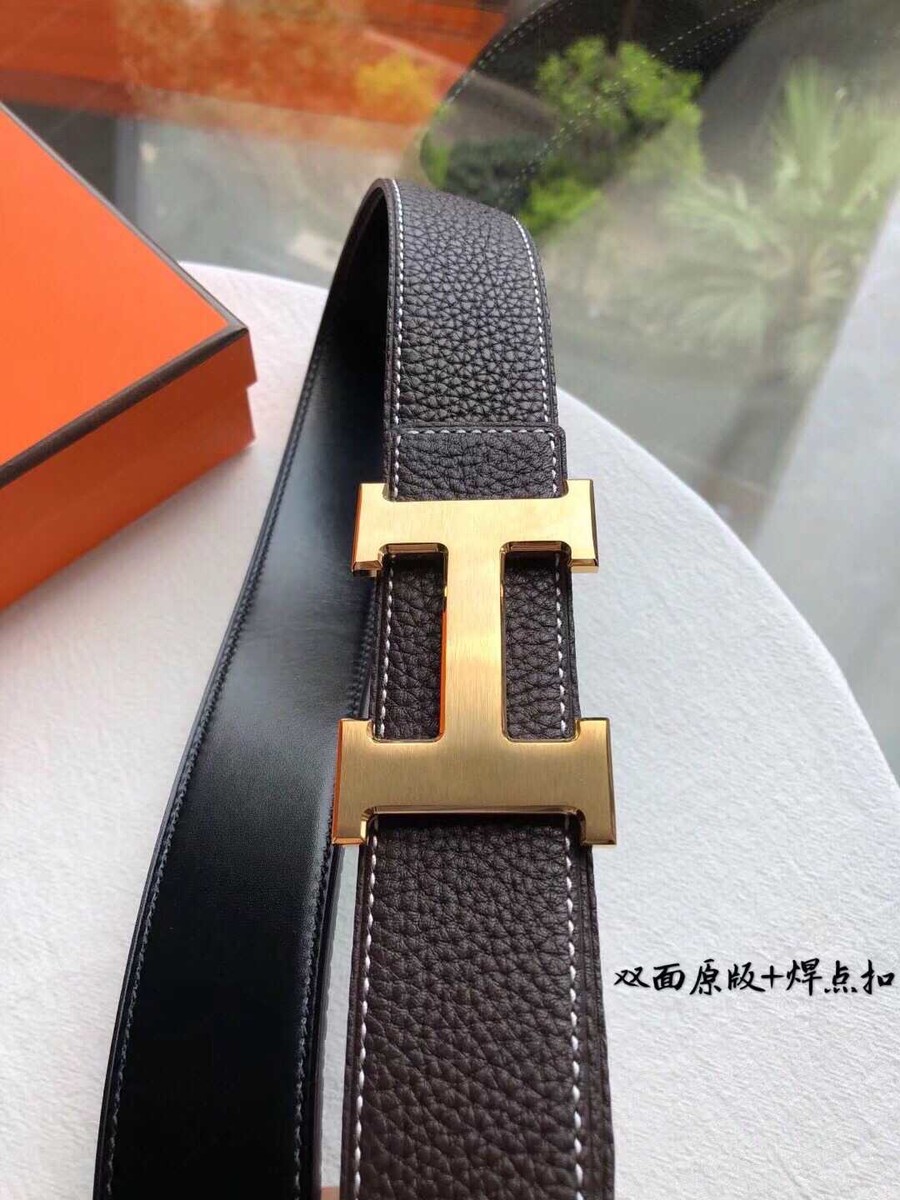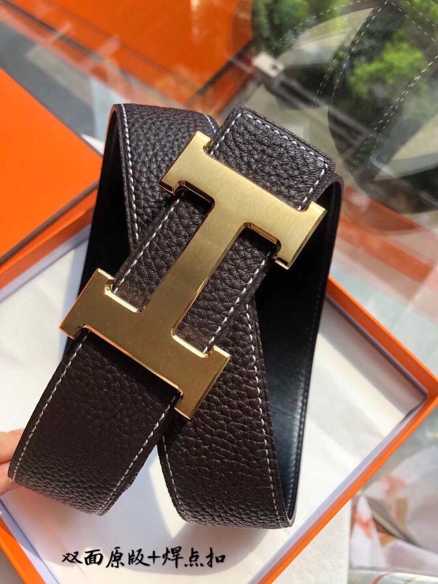 Hermes Stainless steel H buckle men s Reversible leather belt 38mm