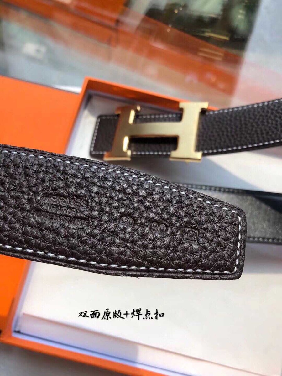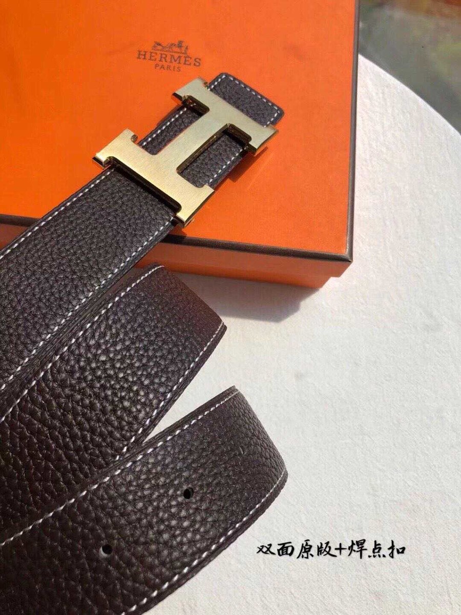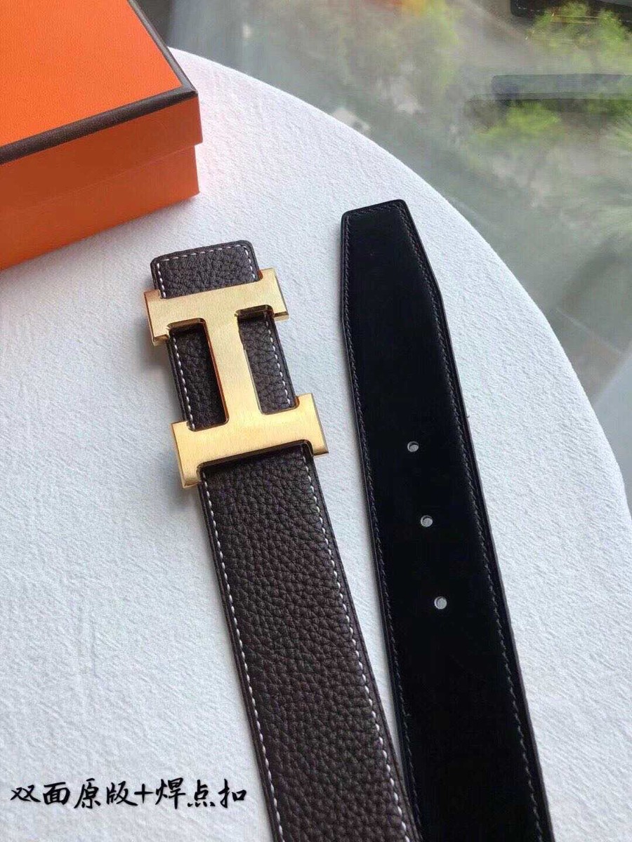 Hermes Stainless steel H buckle men s Reversible leather belt 38mm