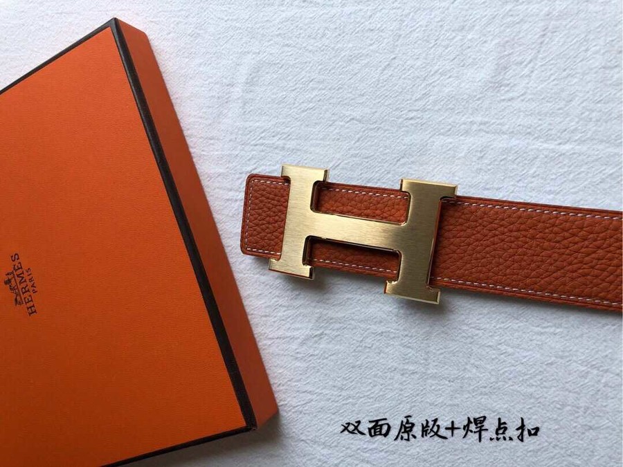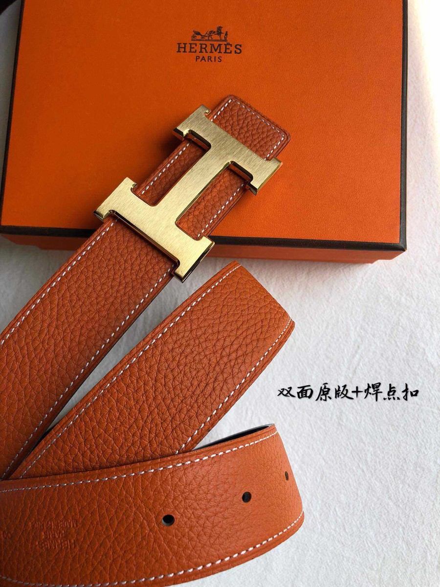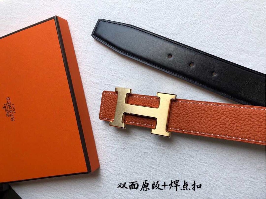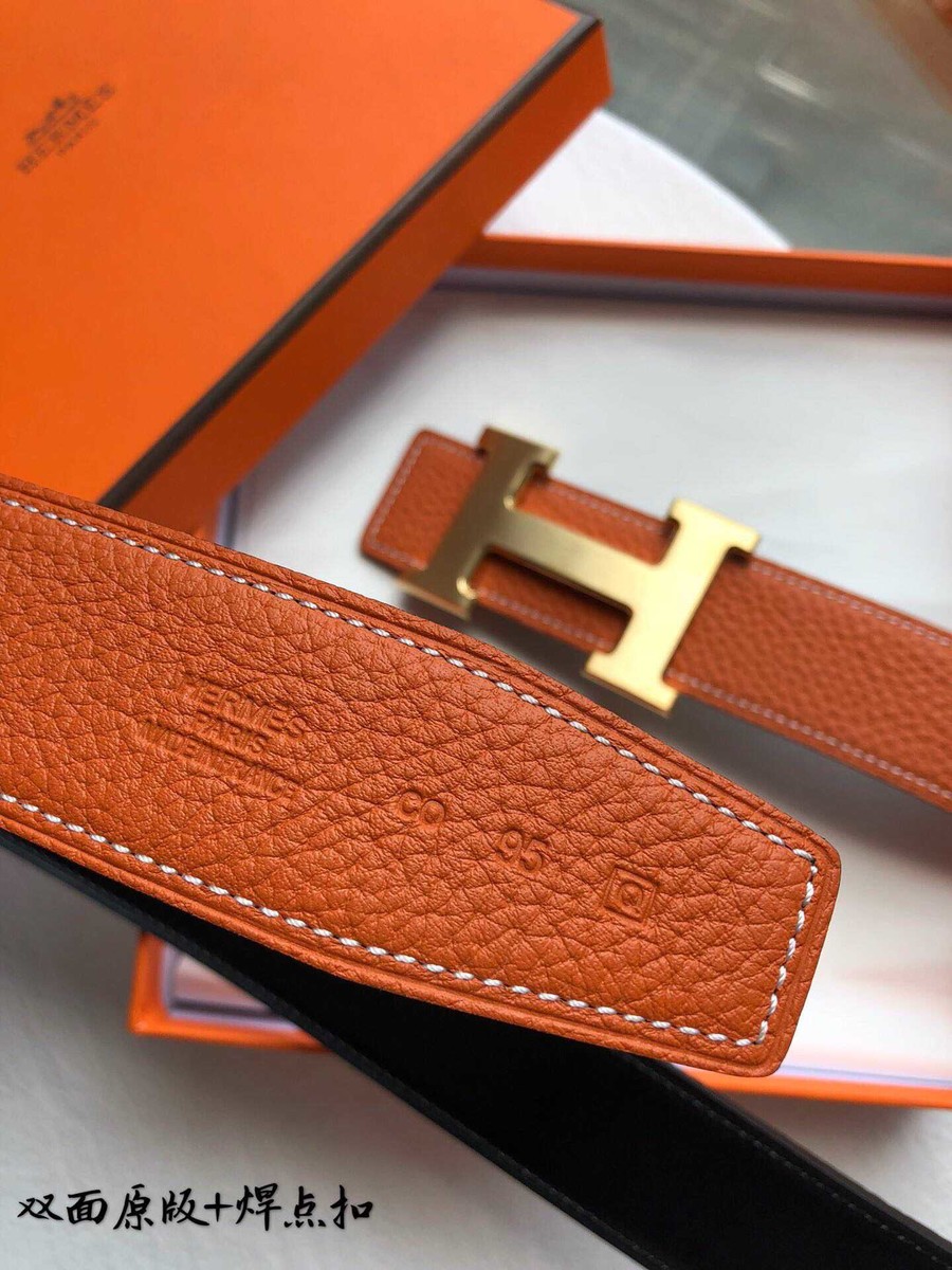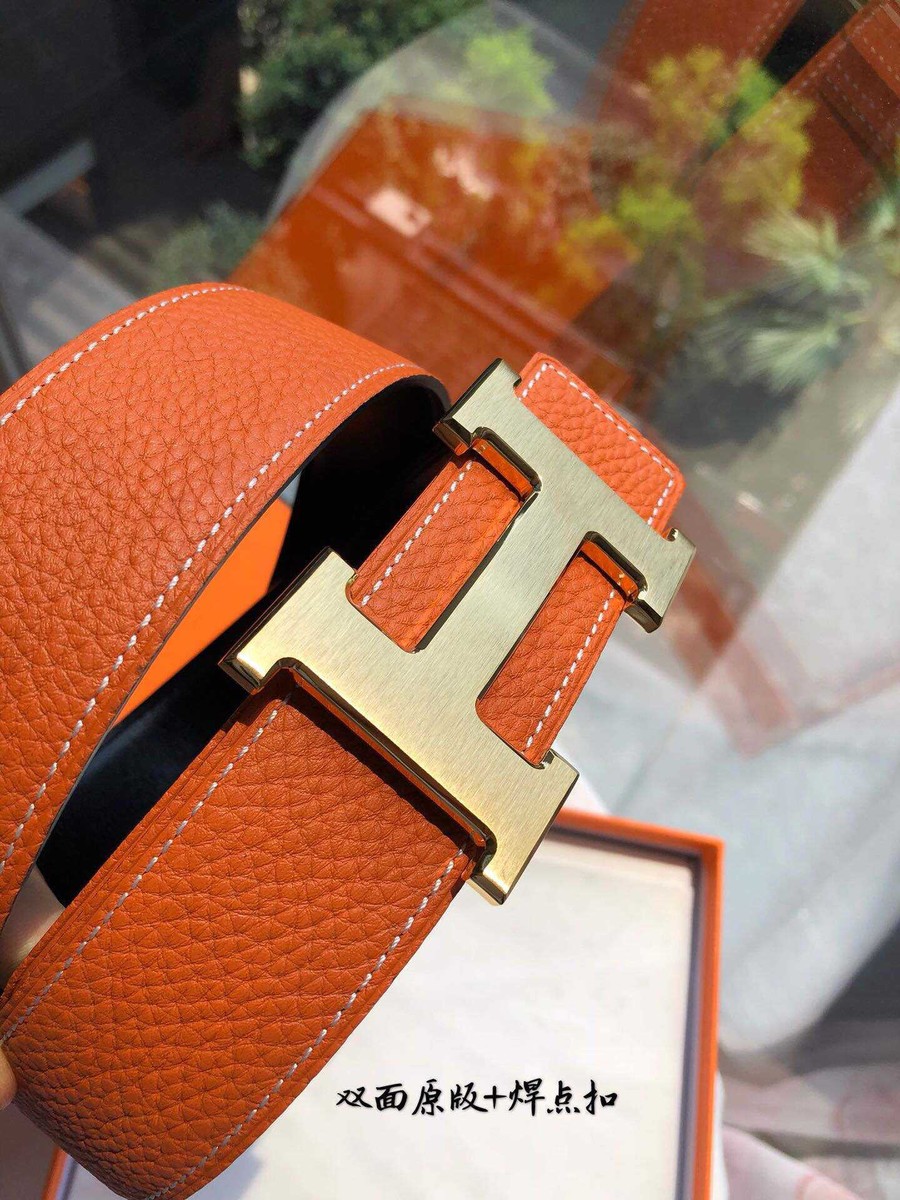 Hermes Stainless steel H buckle men s Reversible leather belt 38mm