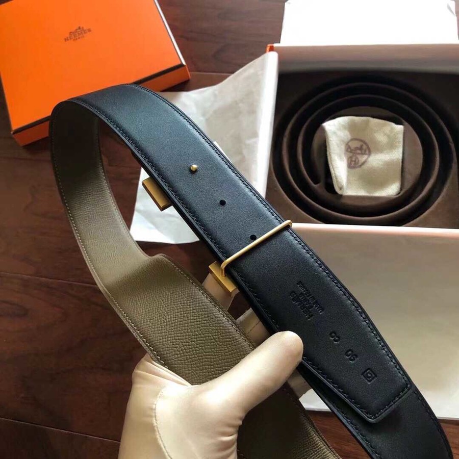 Hermes Men s belt with gold and silver metal buckle 4.2cm