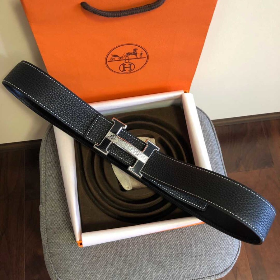 Hermes Men s Reversible Leather Belt 38mm with Stainless Steel Buckle