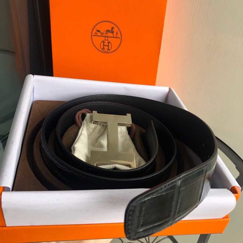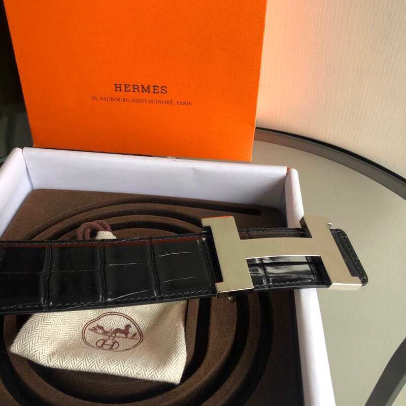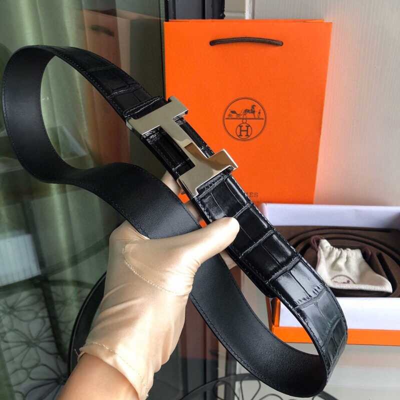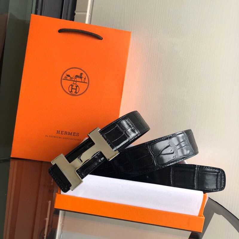 Hermes Men s 3.8cm high-quality H four-corner shiny buckle leather belt