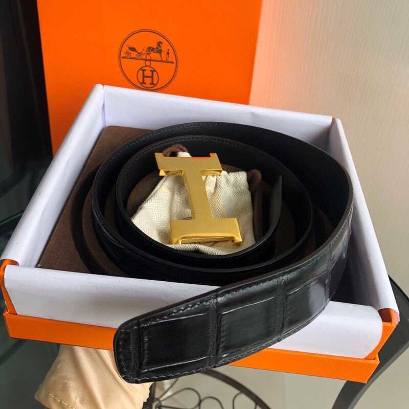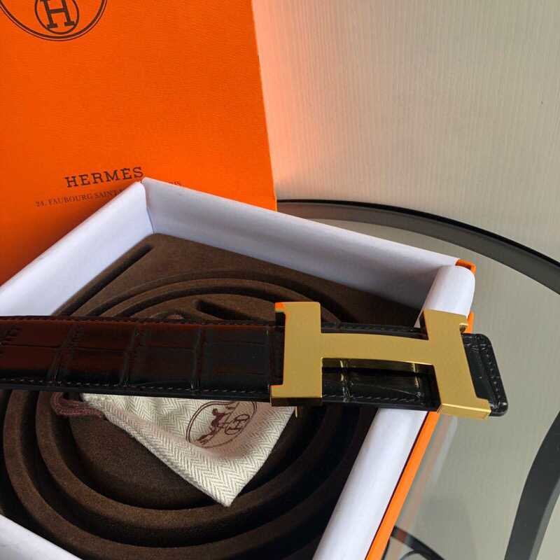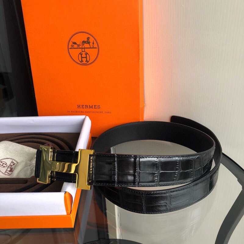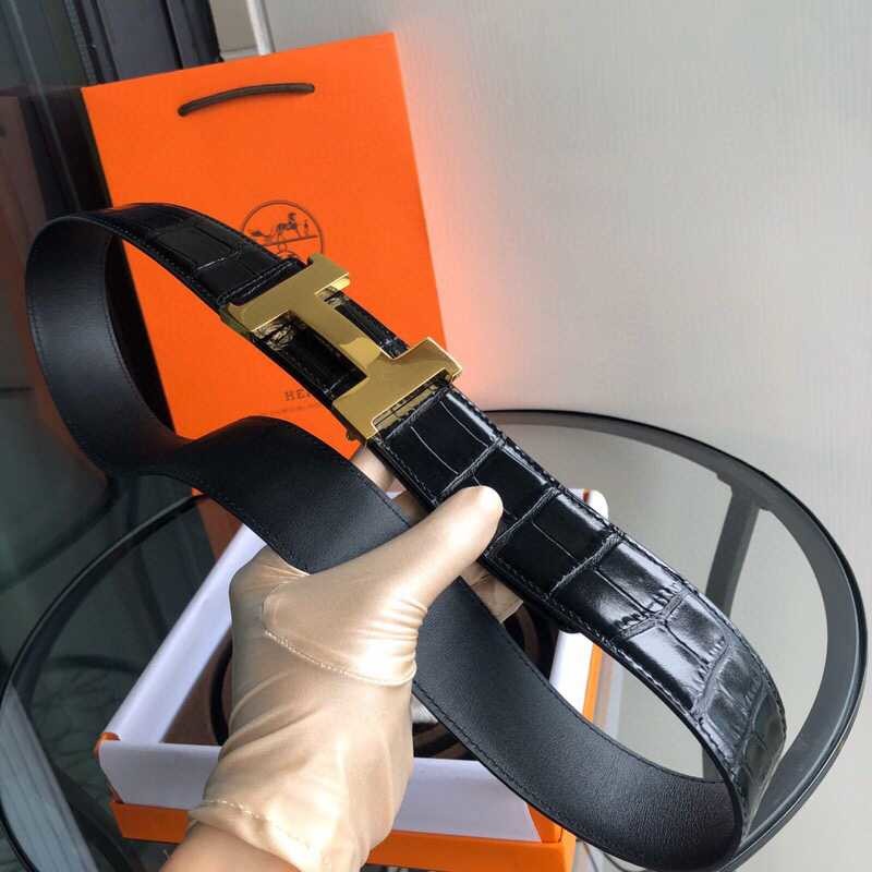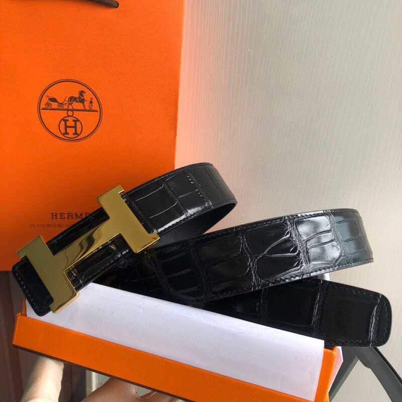 Hermes Men s 3.8cm high-quality H four-corner shiny buckle leather belt