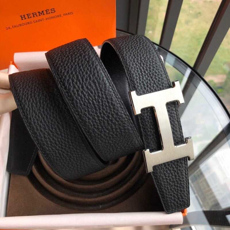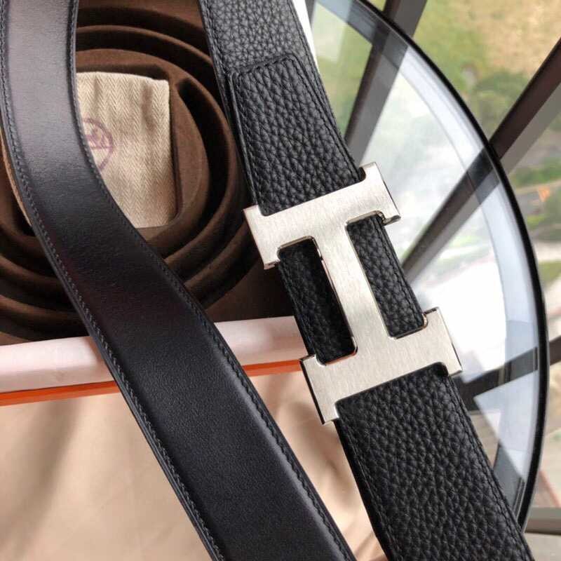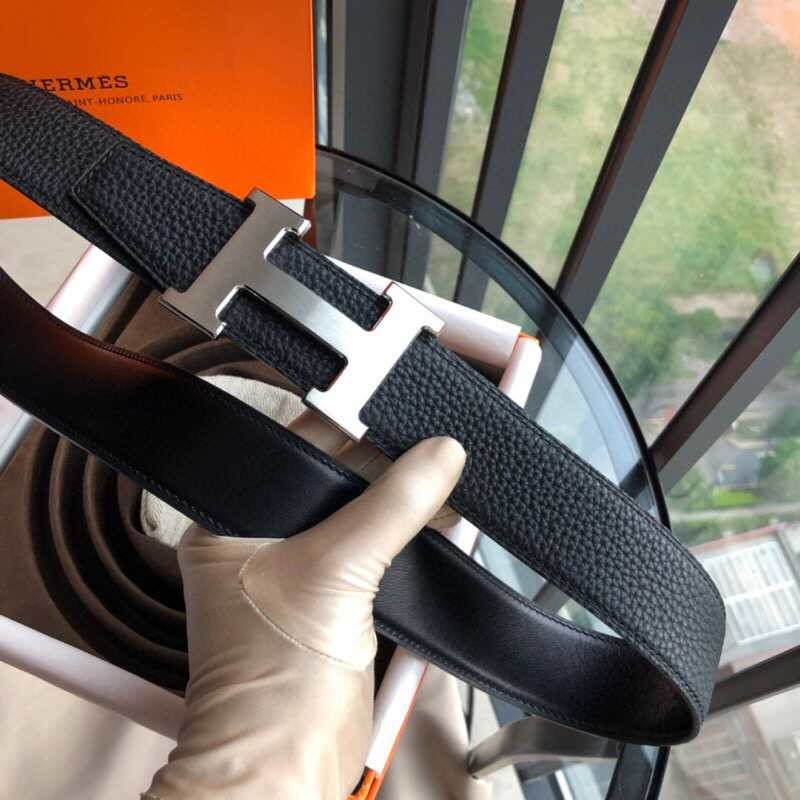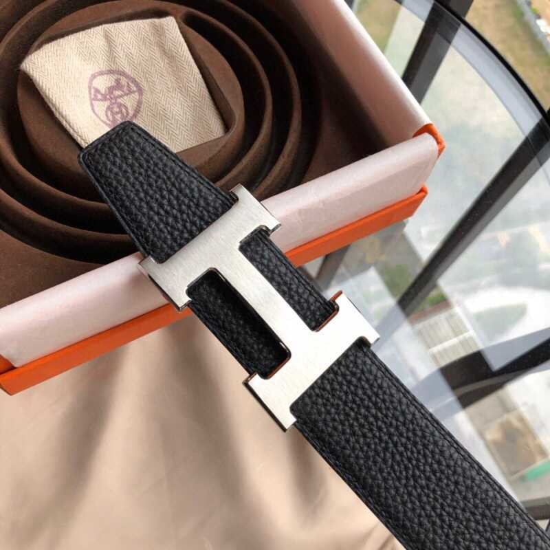 Hermes H gold/silver metal buckle men s Reversible leather belt 38mm