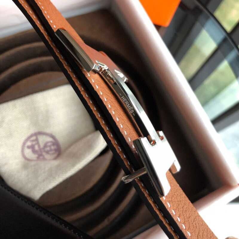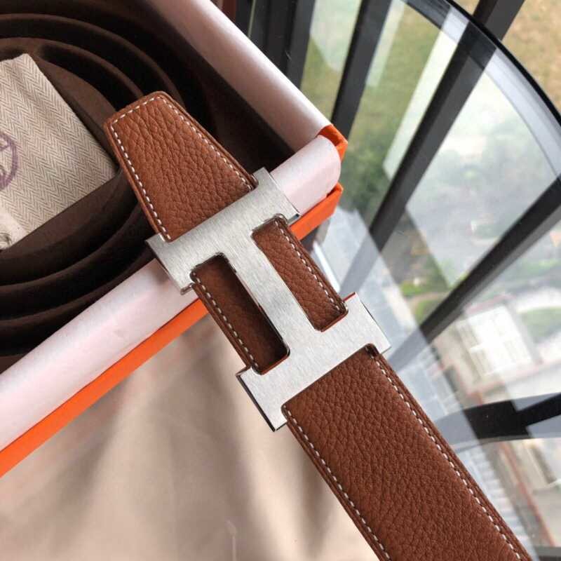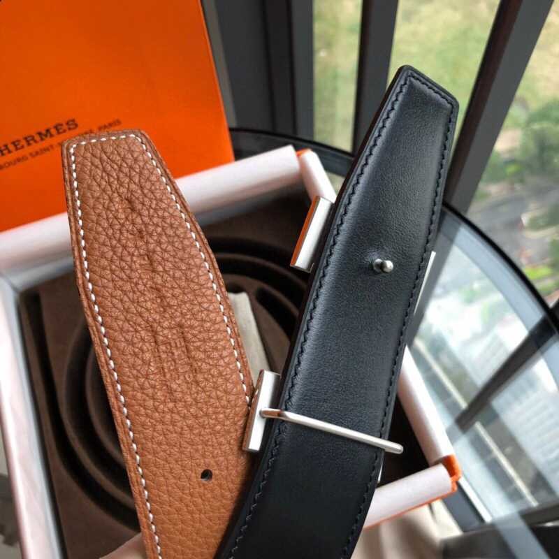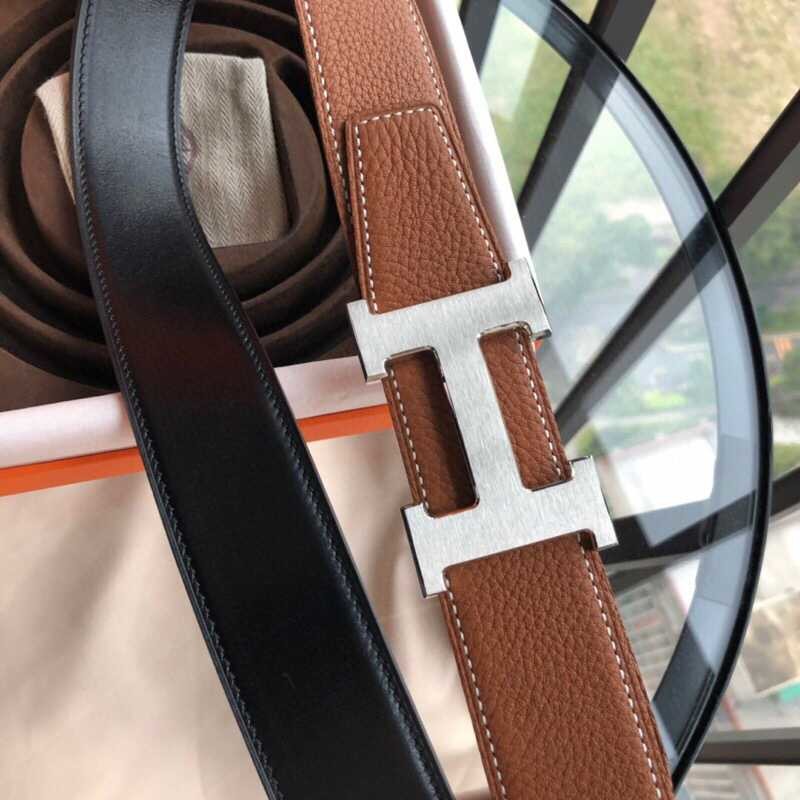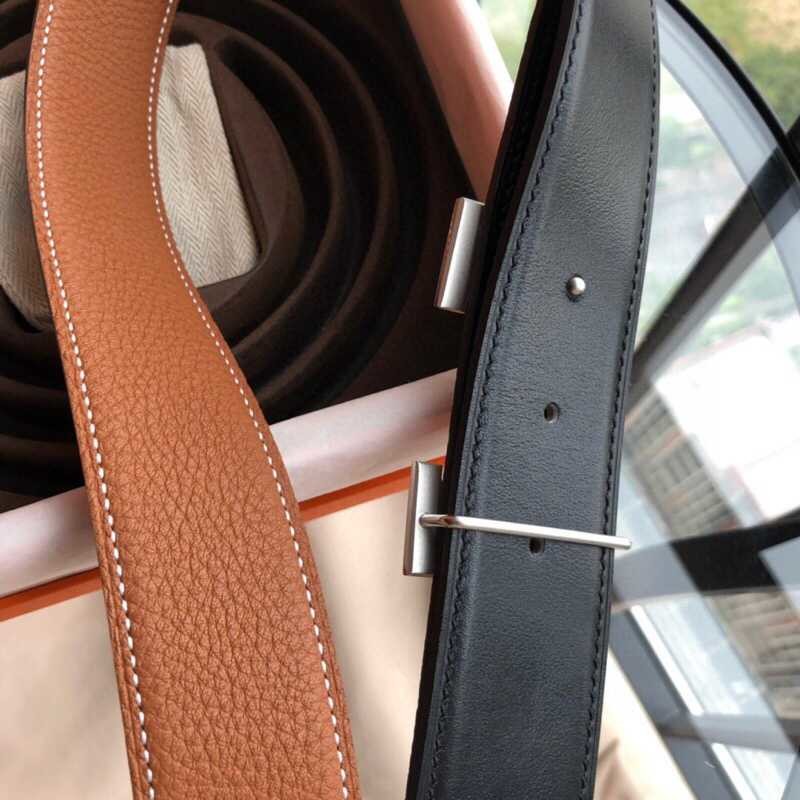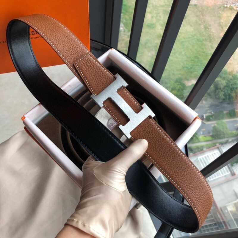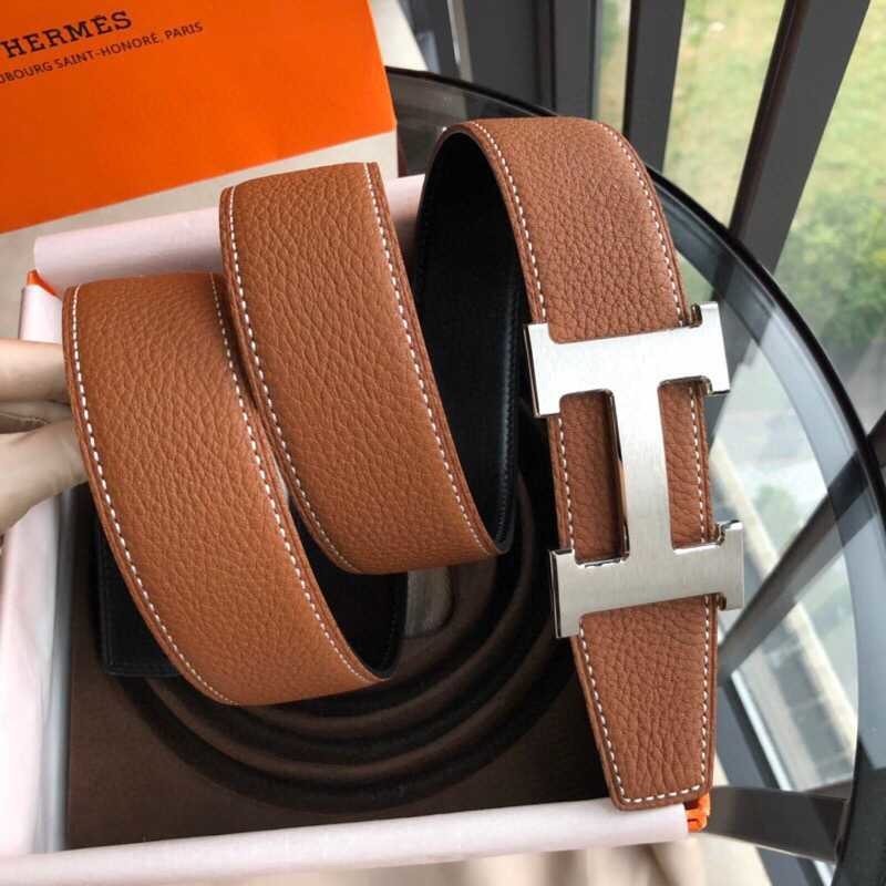 Hermes H gold/silver metal buckle men s Reversible leather belt 38mm