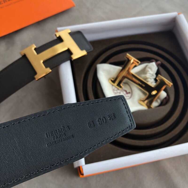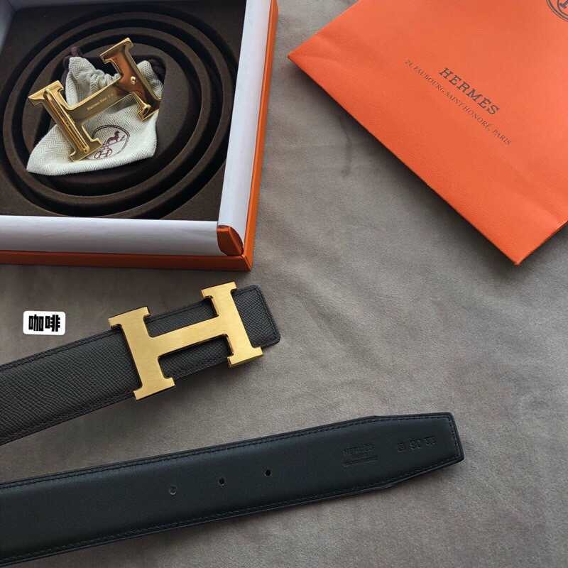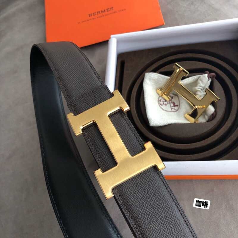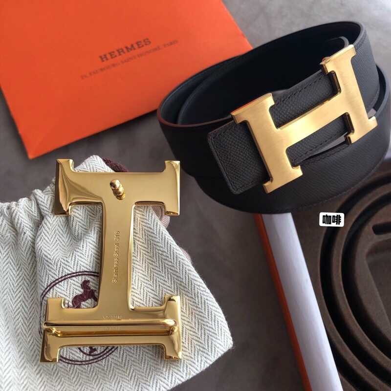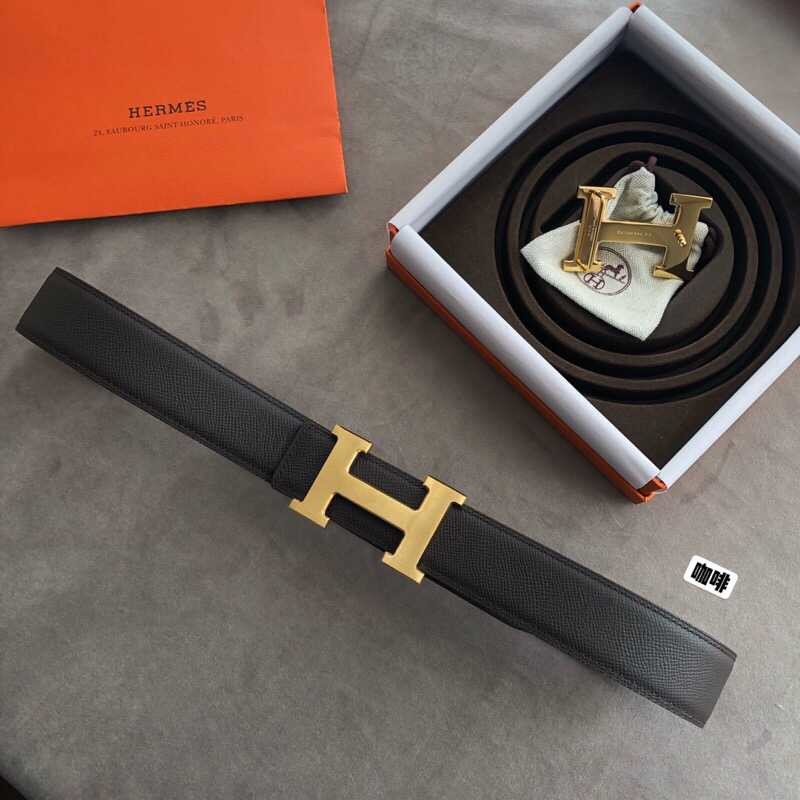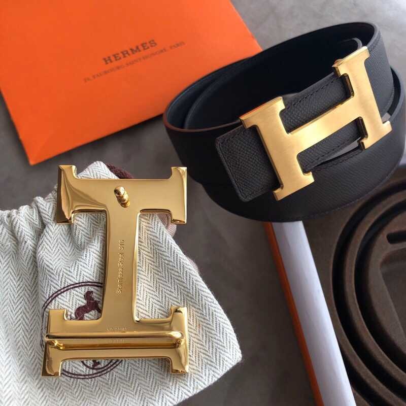 Hermes Stainless steel 316H metal buckle (mirror shine at the bottom) leather men s 3.8cm belt