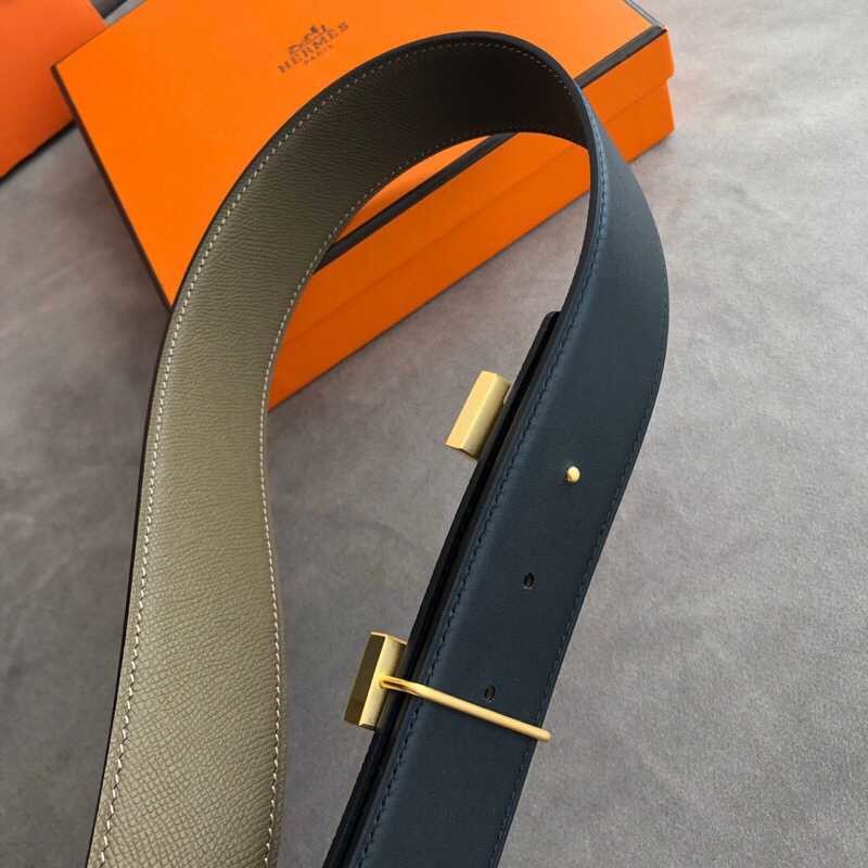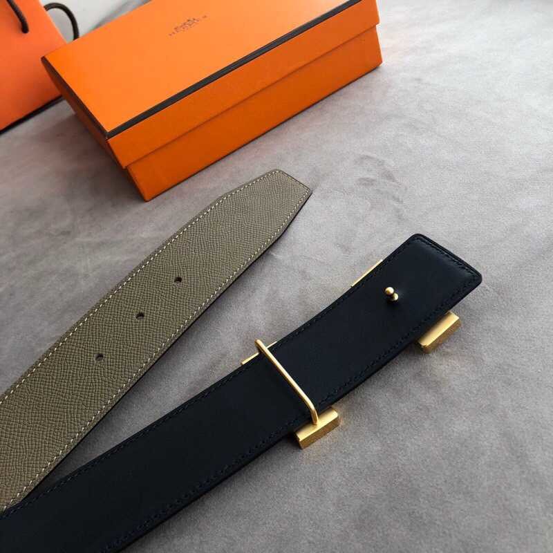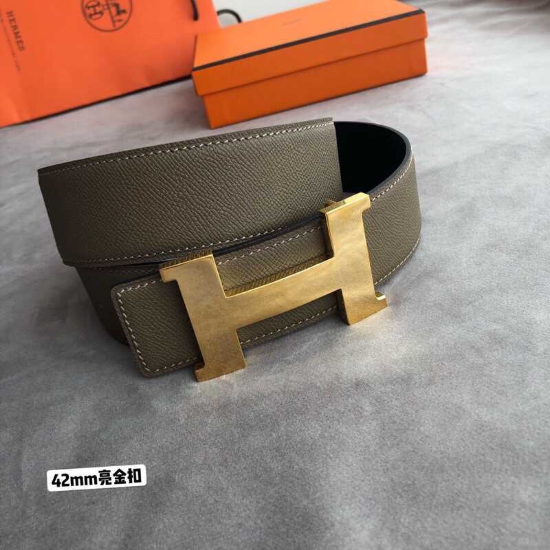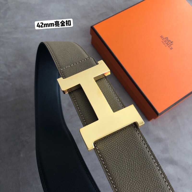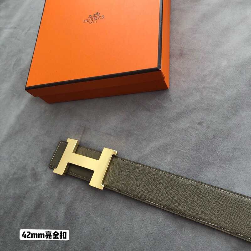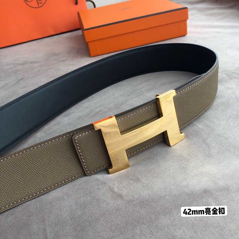 Hermes Boutique four-corner shiny gold/silver metal buckle men s belt 42mm