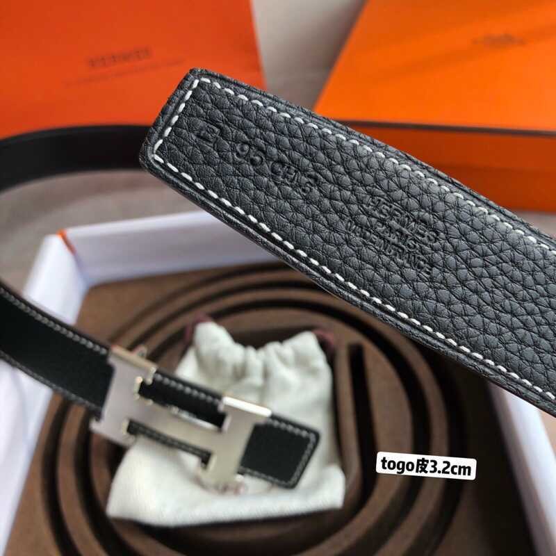 Hermes H gold/palladium buckle togo leather calfskin belt 3.2cm
