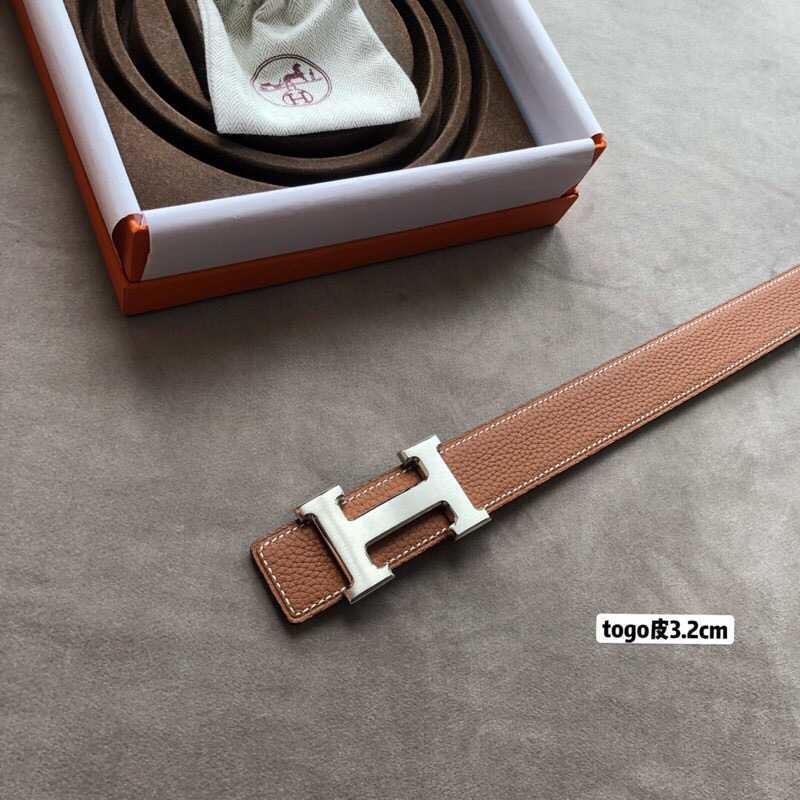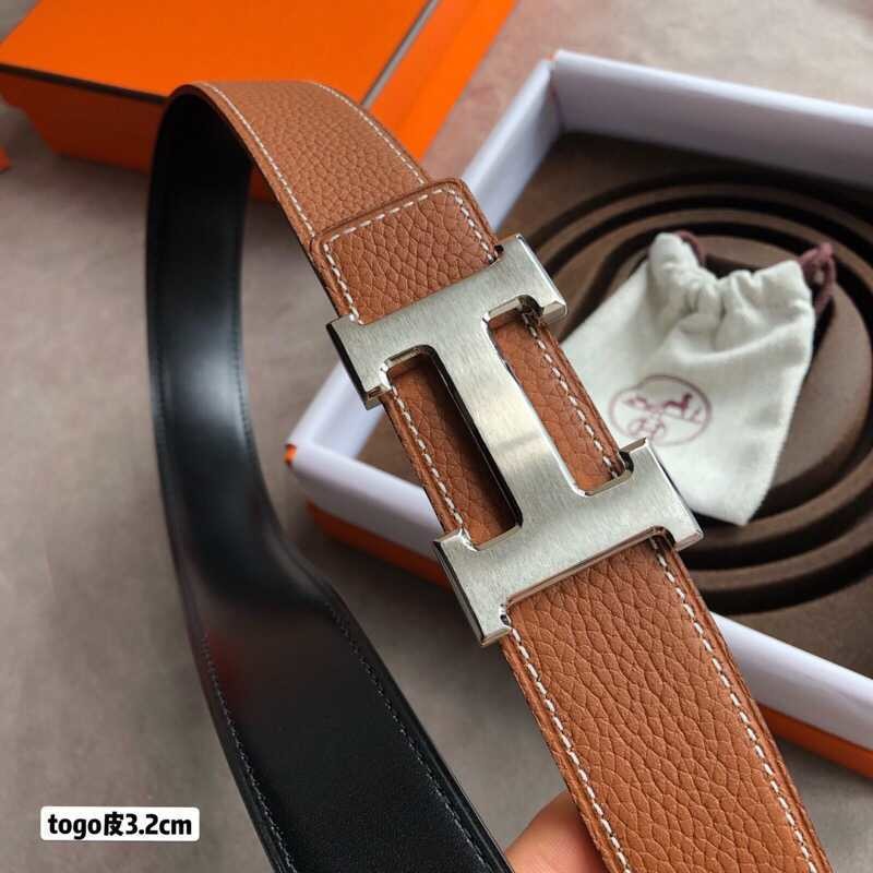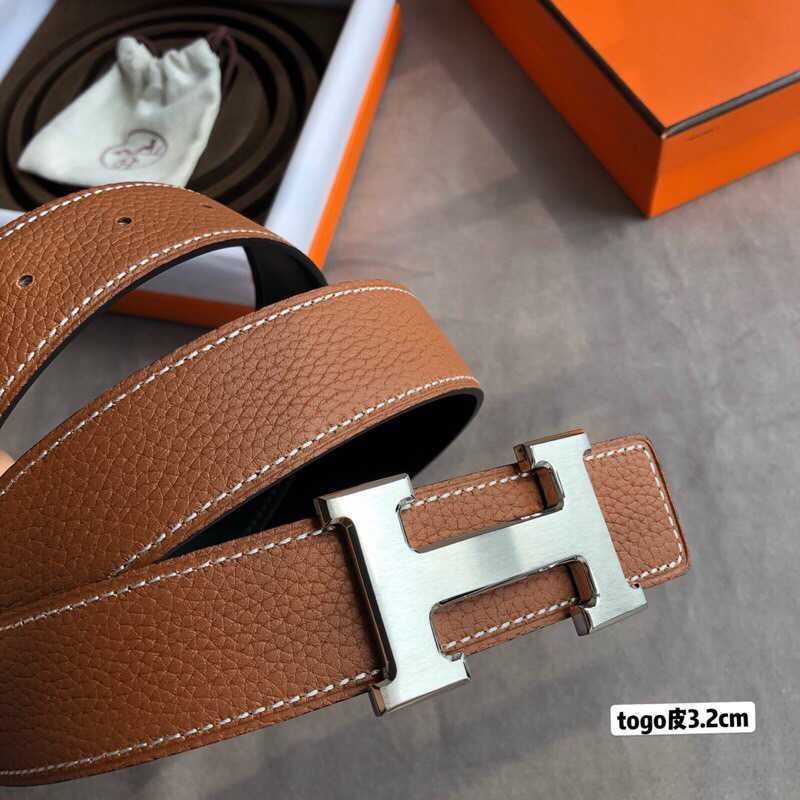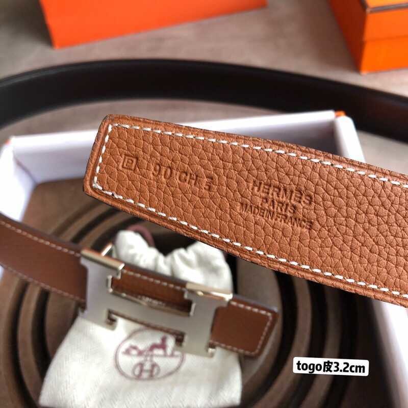 Hermes H gold/palladium buckle togo leather calfskin belt 3.2cm