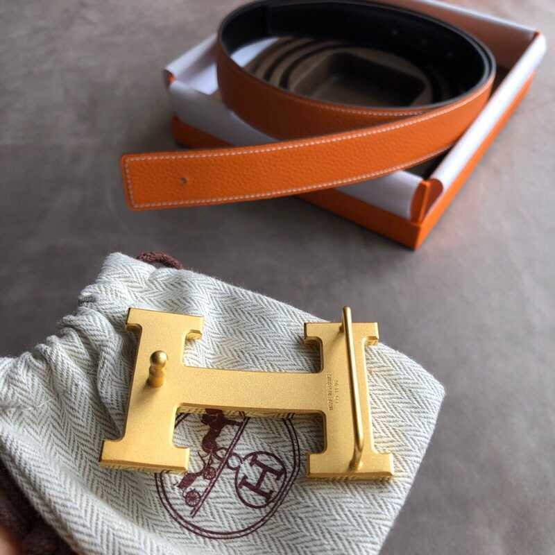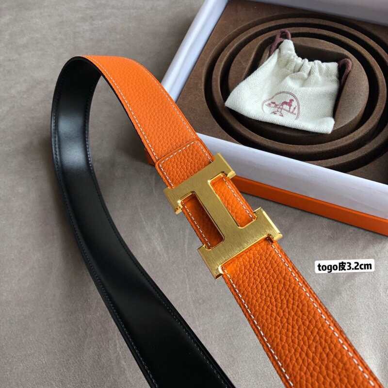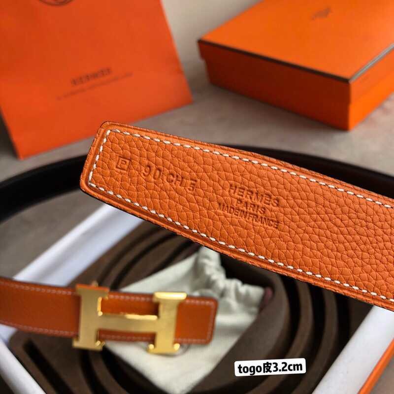 Hermes H gold/palladium buckle togo leather calfskin belt 3.2cm