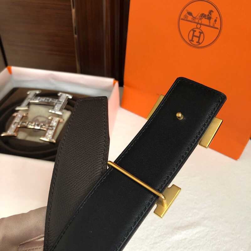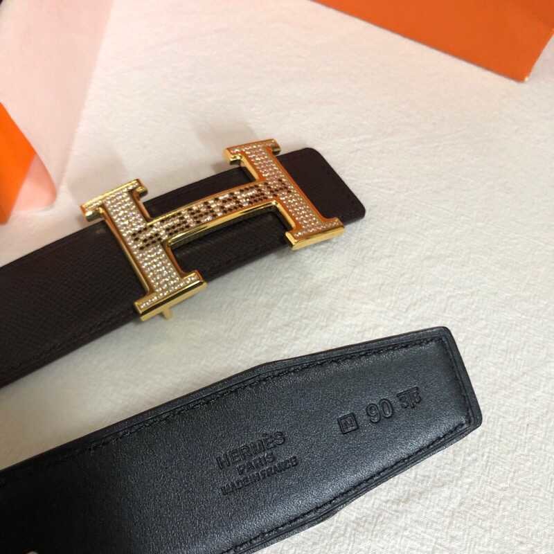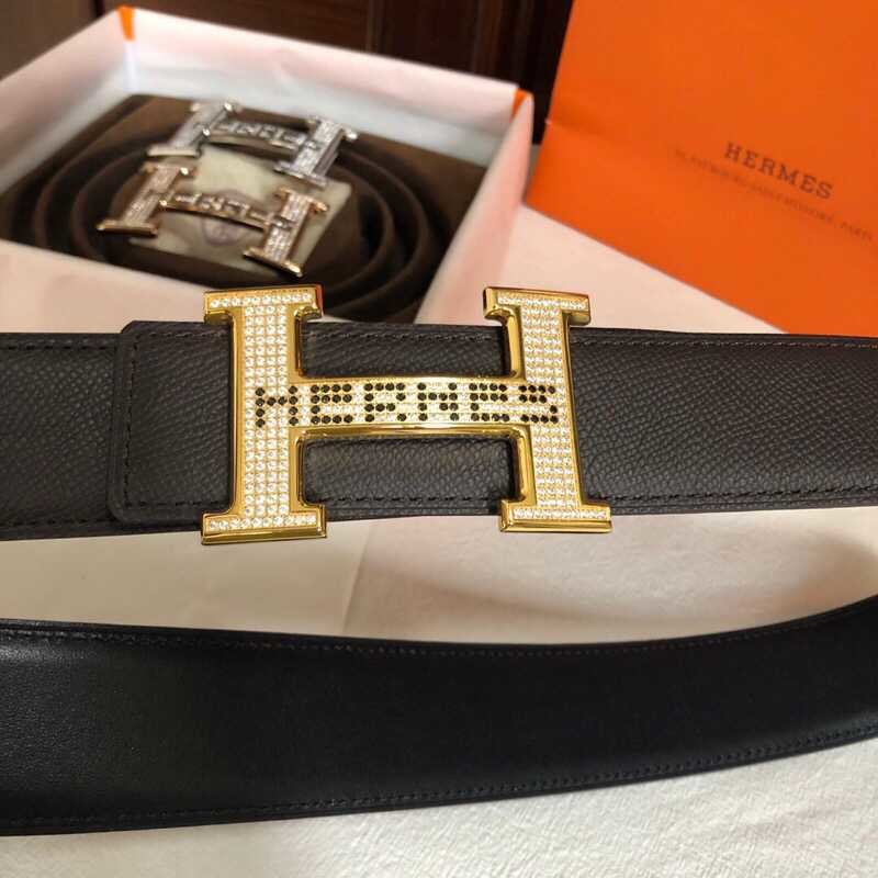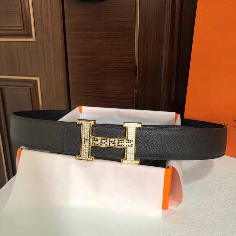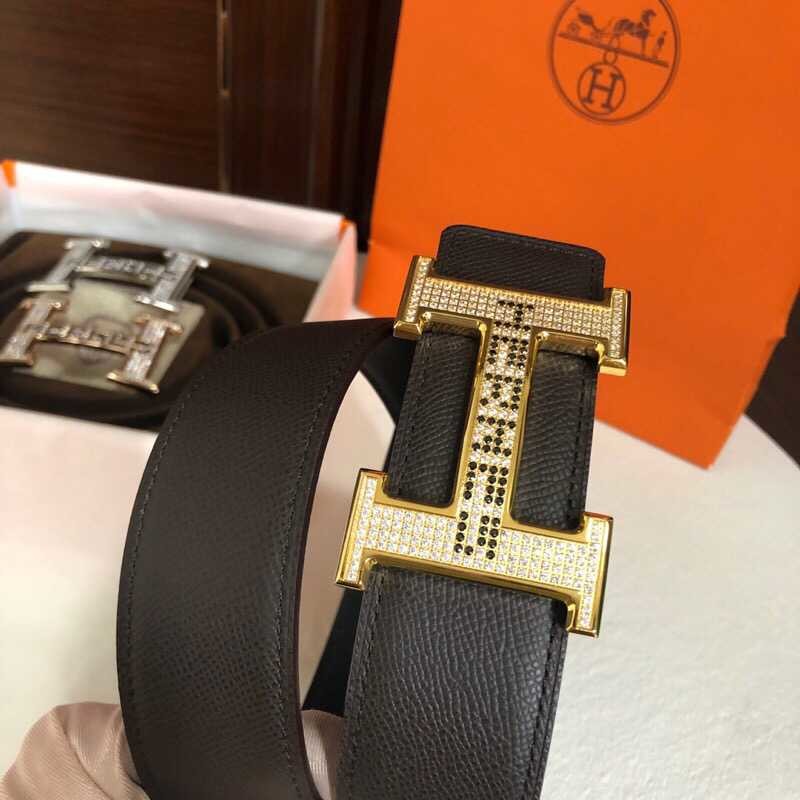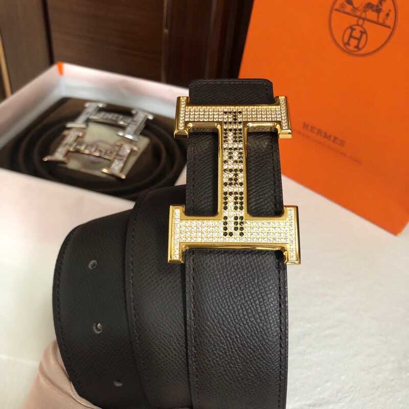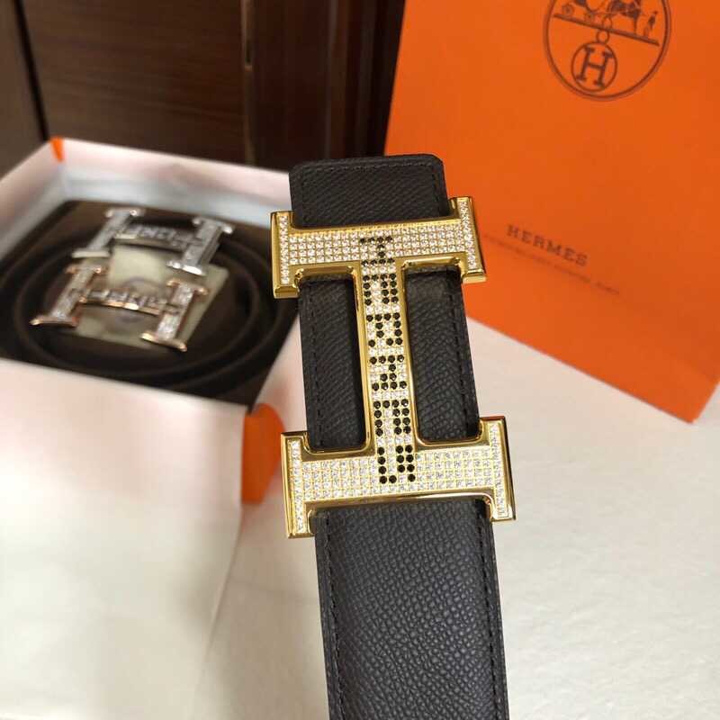 Hermes Men s 3.8cm stainless steel h leather belt with full rhinestones and metal buckle