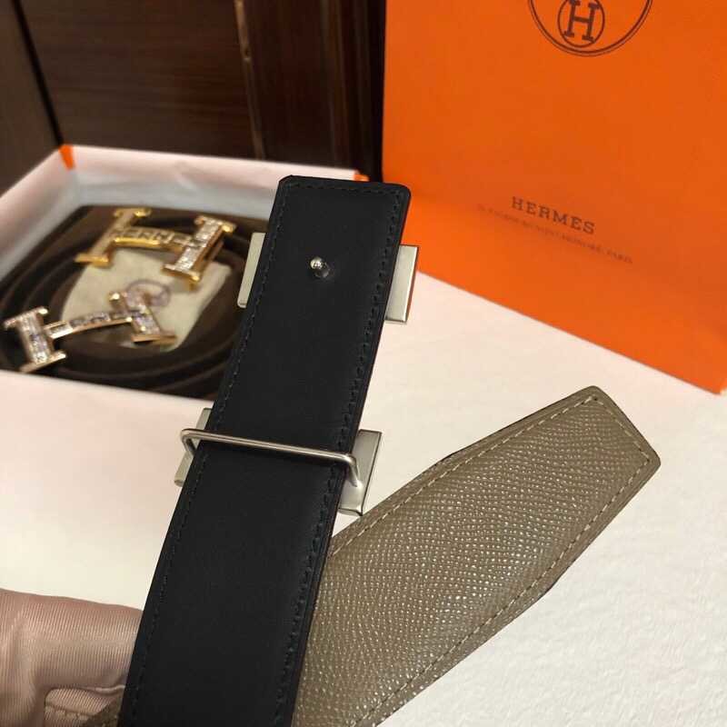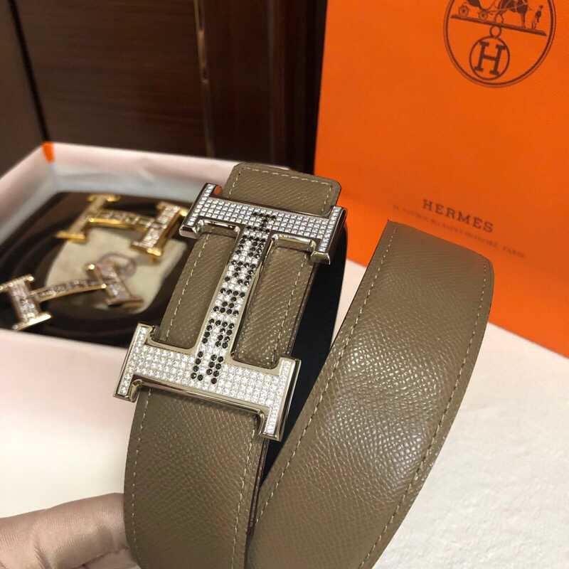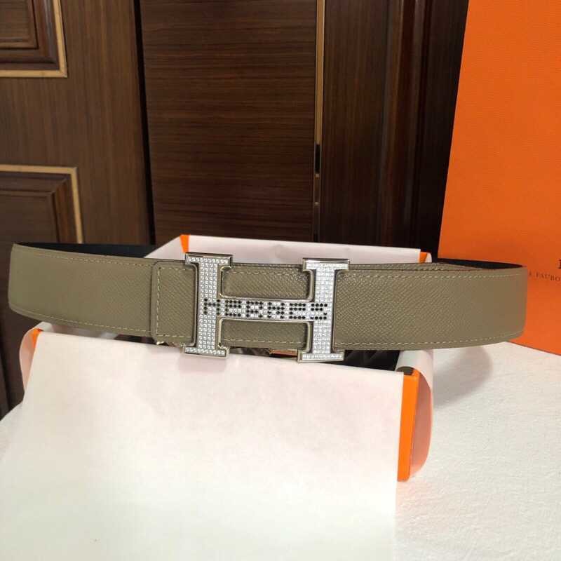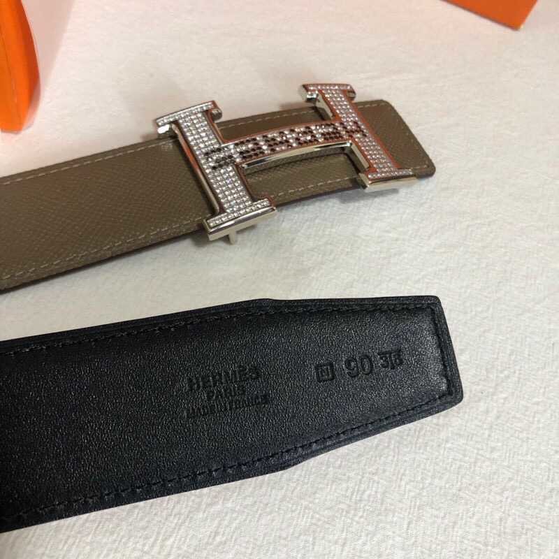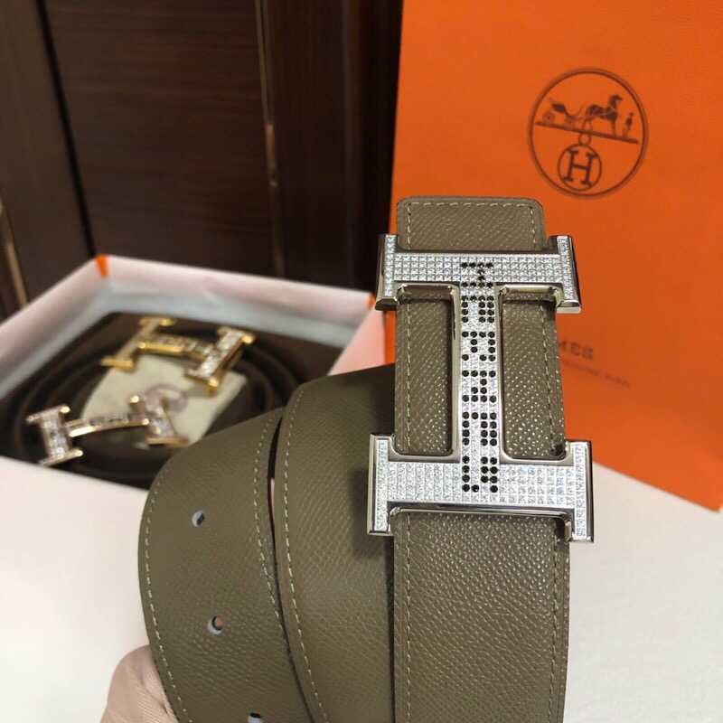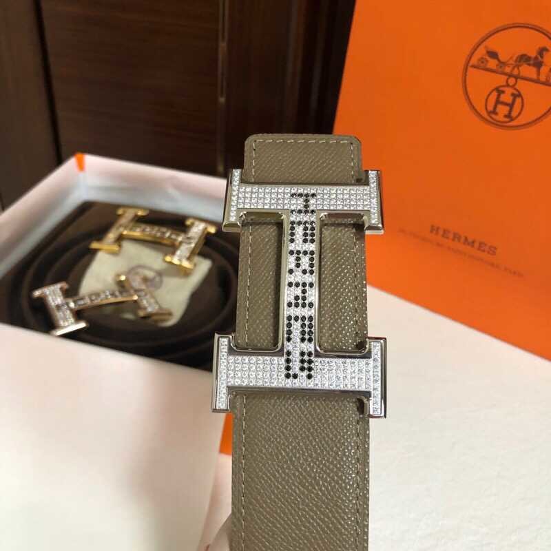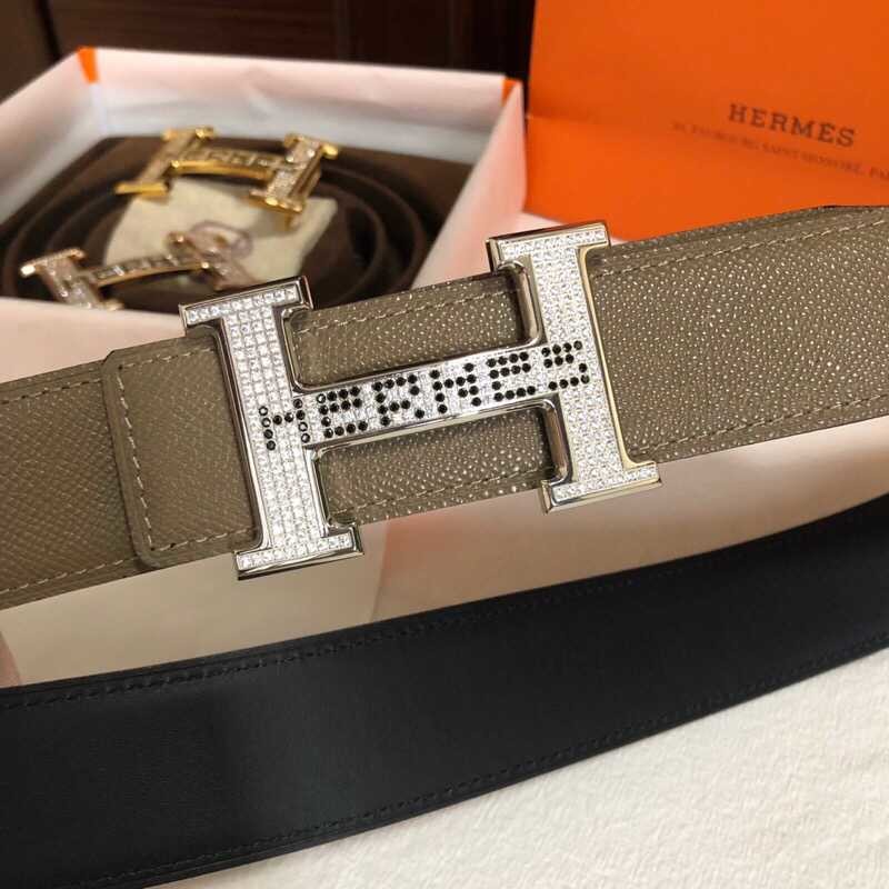 Hermes Men s 3.8cm stainless steel h leather belt with full rhinestones and metal buckle
