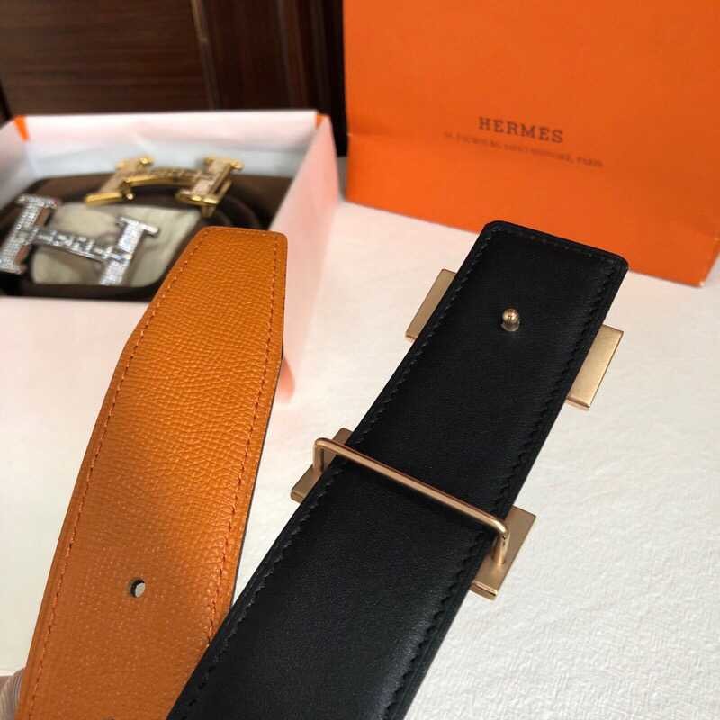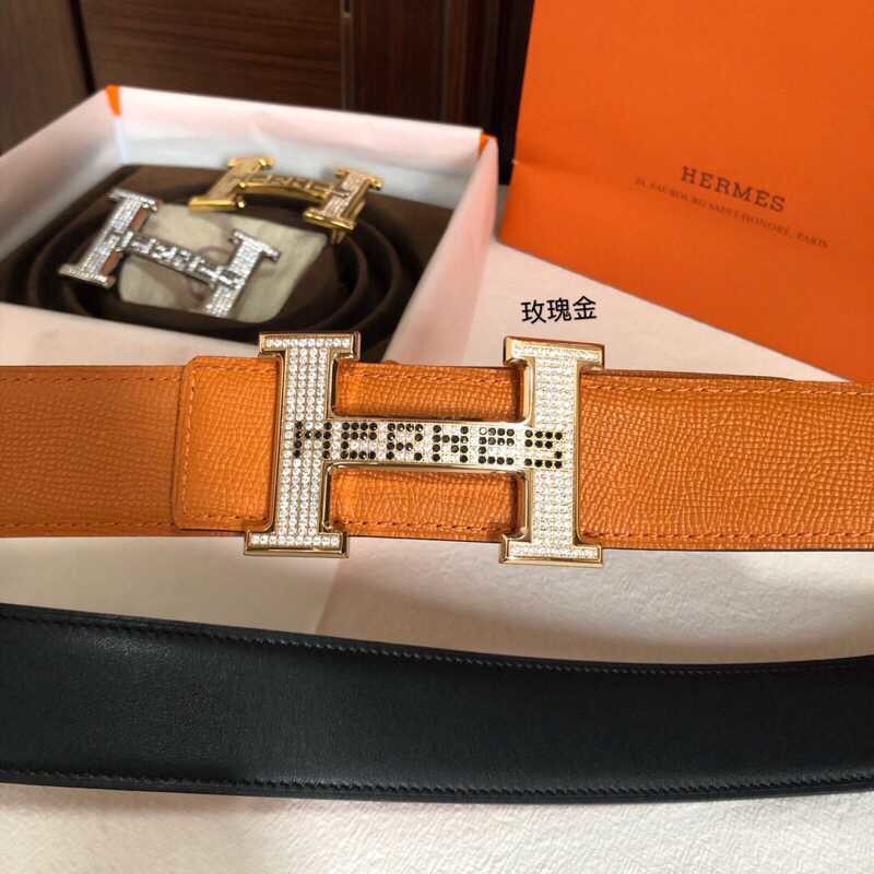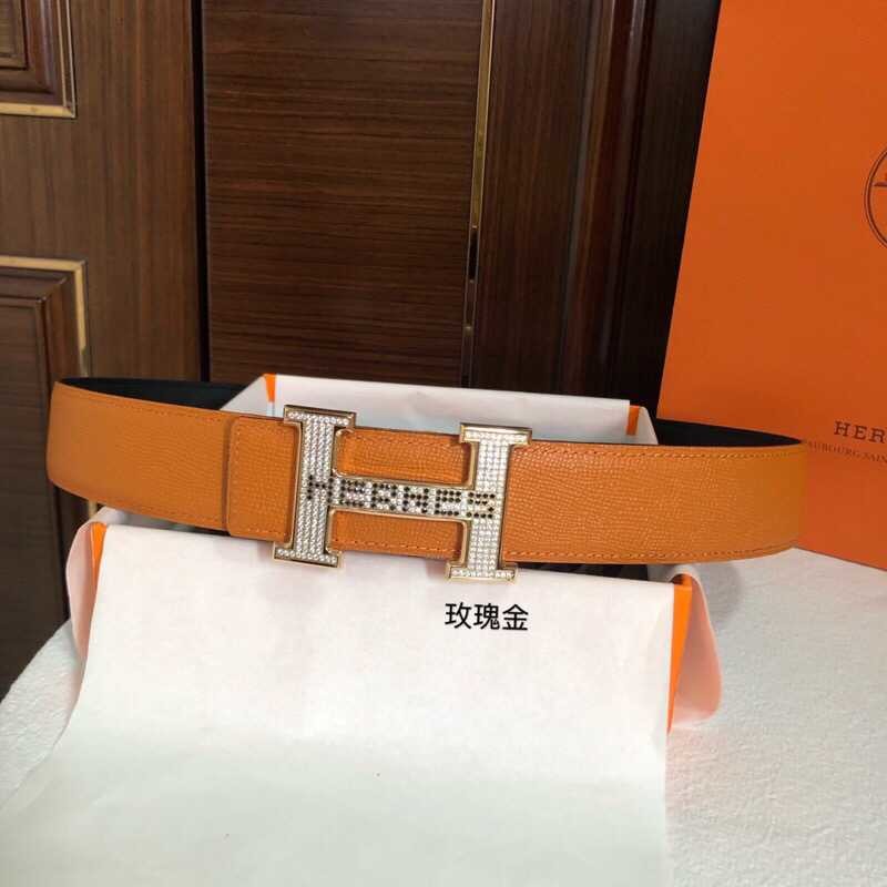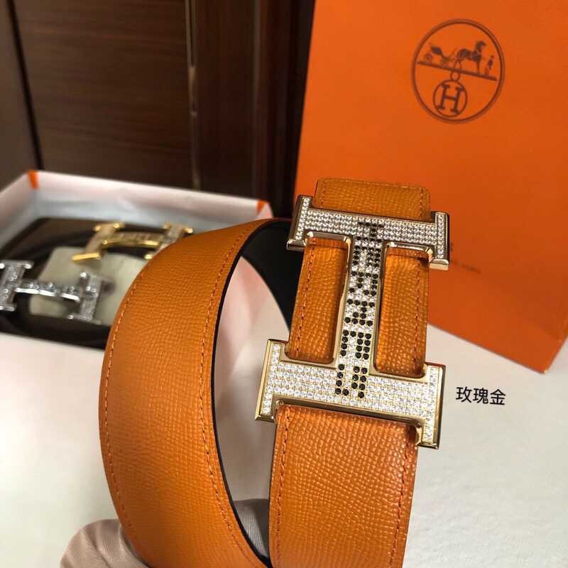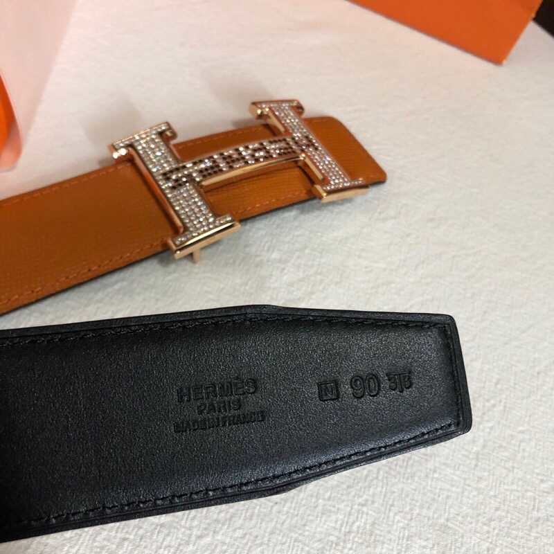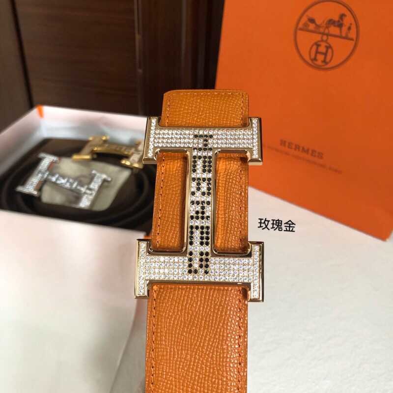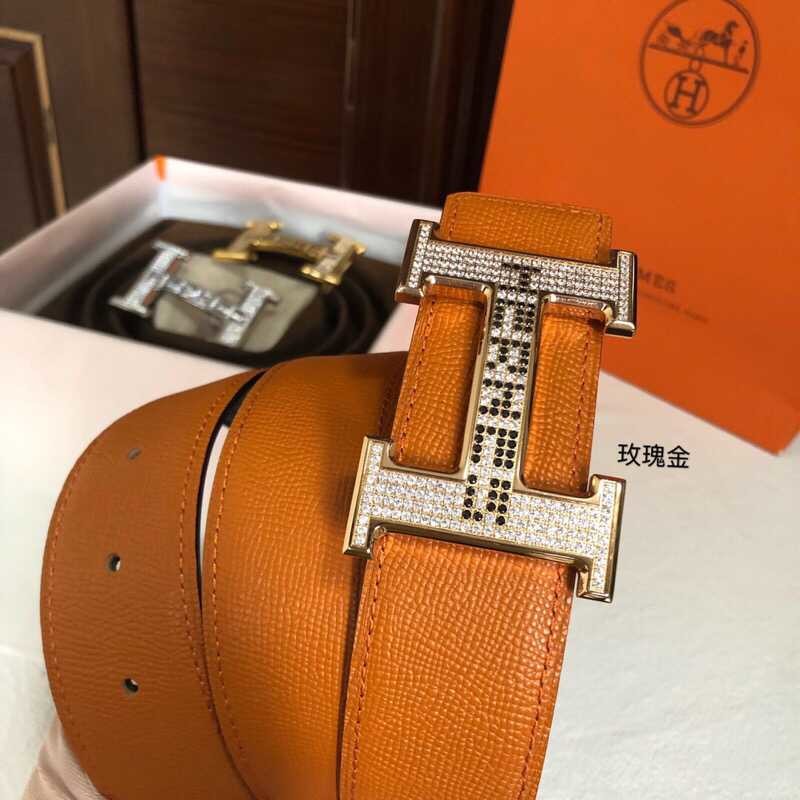 Hermes Men s 3.8cm stainless steel h leather belt with full rhinestones and metal buckle
