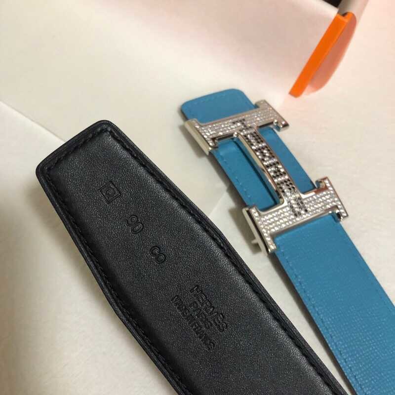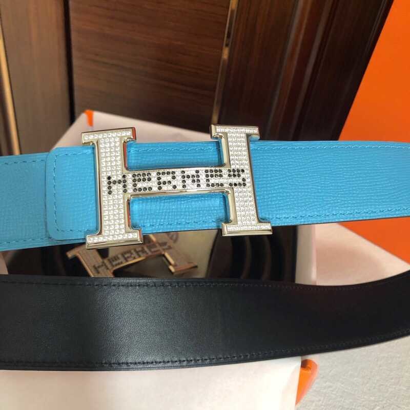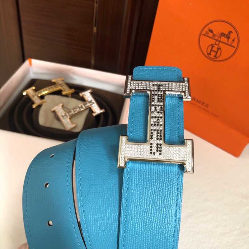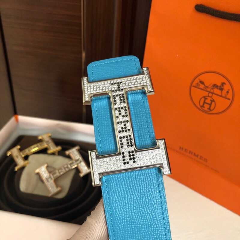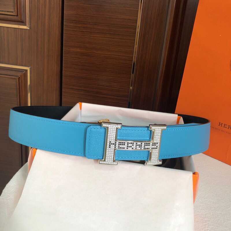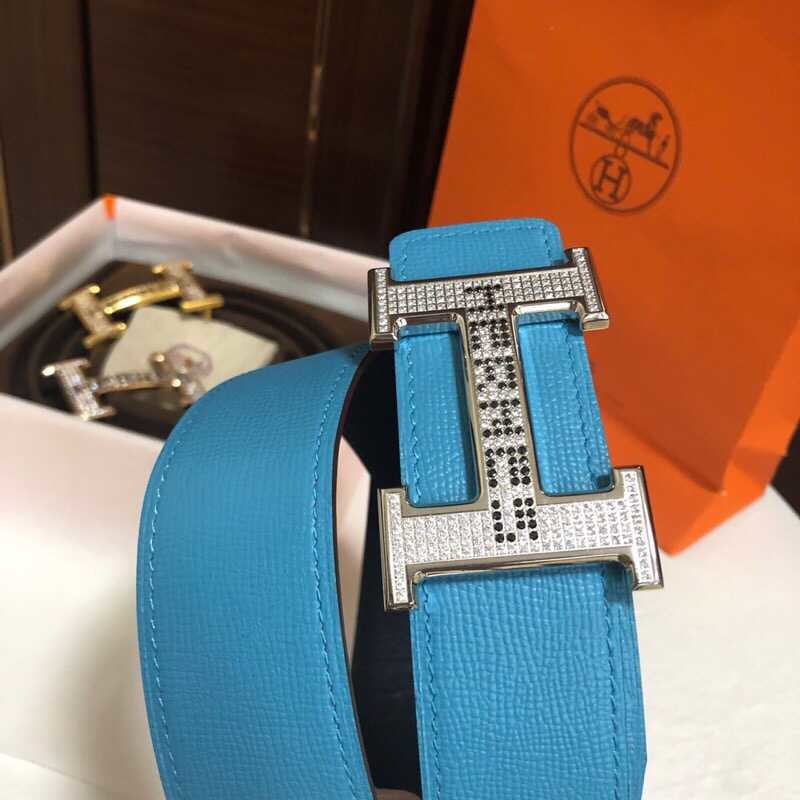 Hermes Men s 3.8cm stainless steel h leather belt with full rhinestones and metal buckle