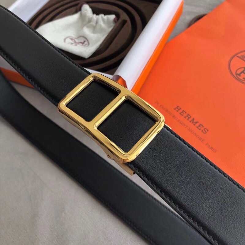 Hermes 35mm Reversible leather belt with exquisite automatic buckle