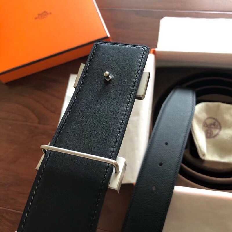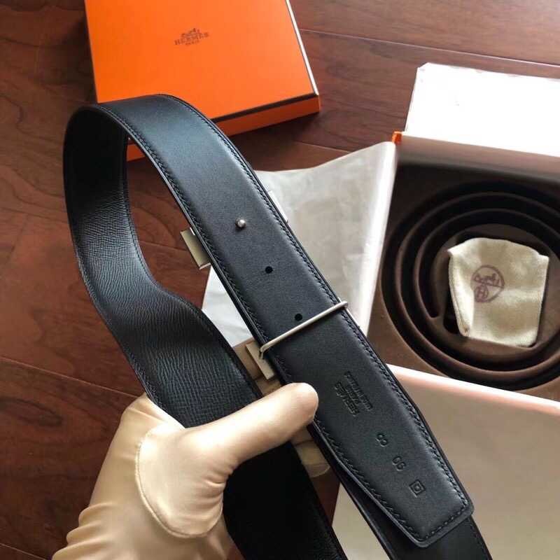 Hermes Men s belt with gold and silver metal buckle 4.2cm
