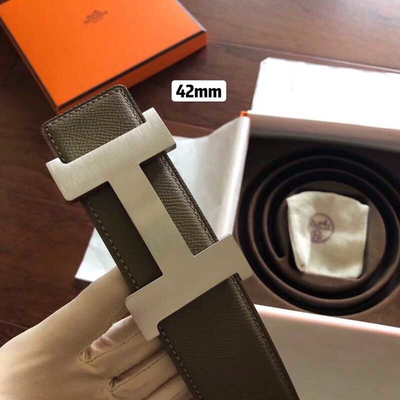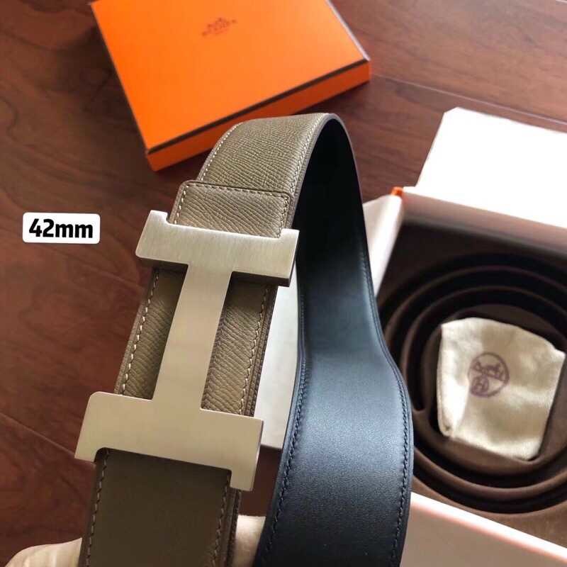 Hermes Men s belt with gold and silver metal buckle 4.2cm