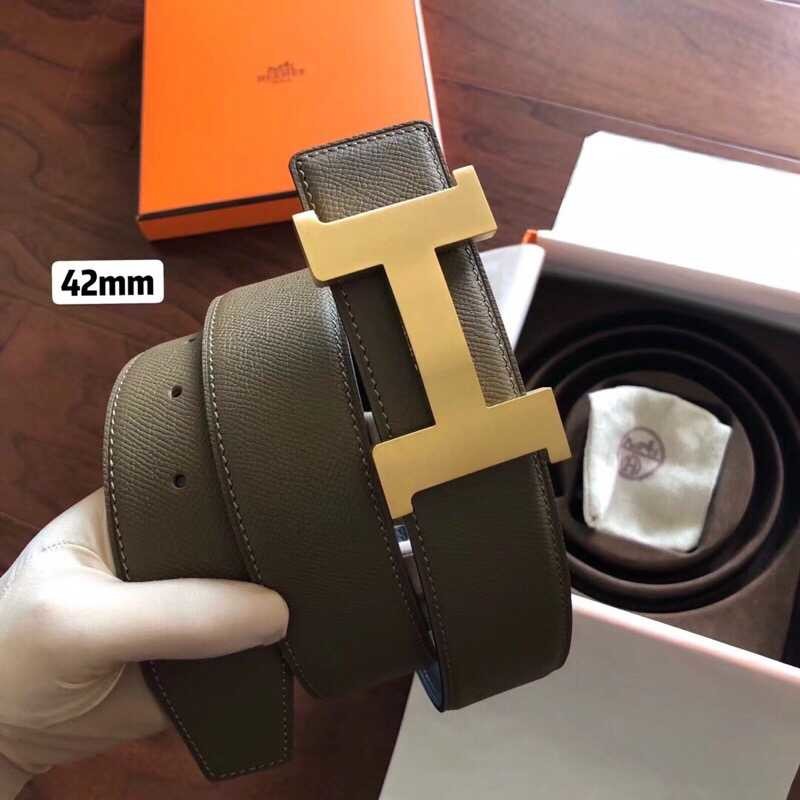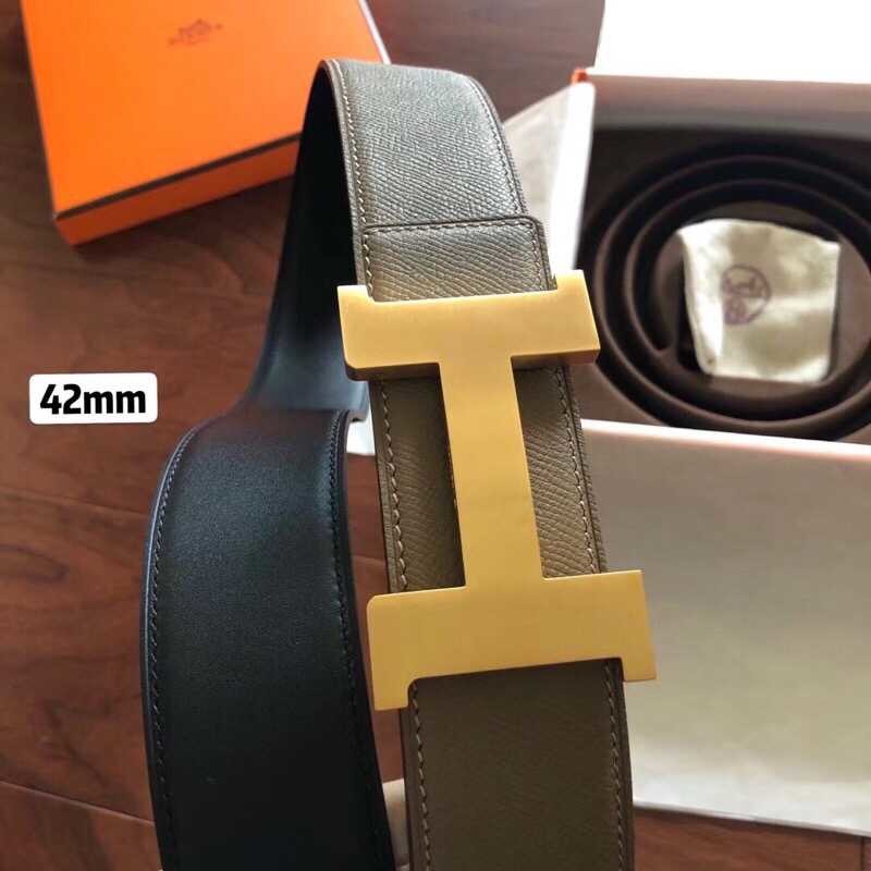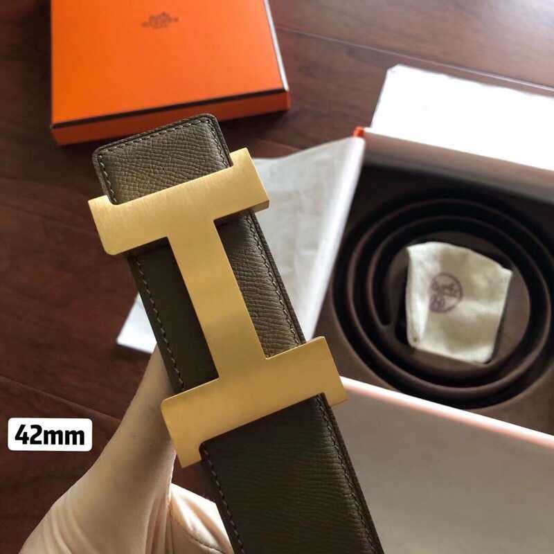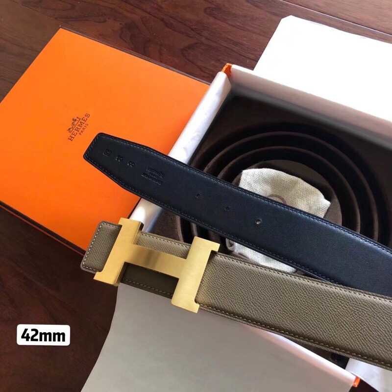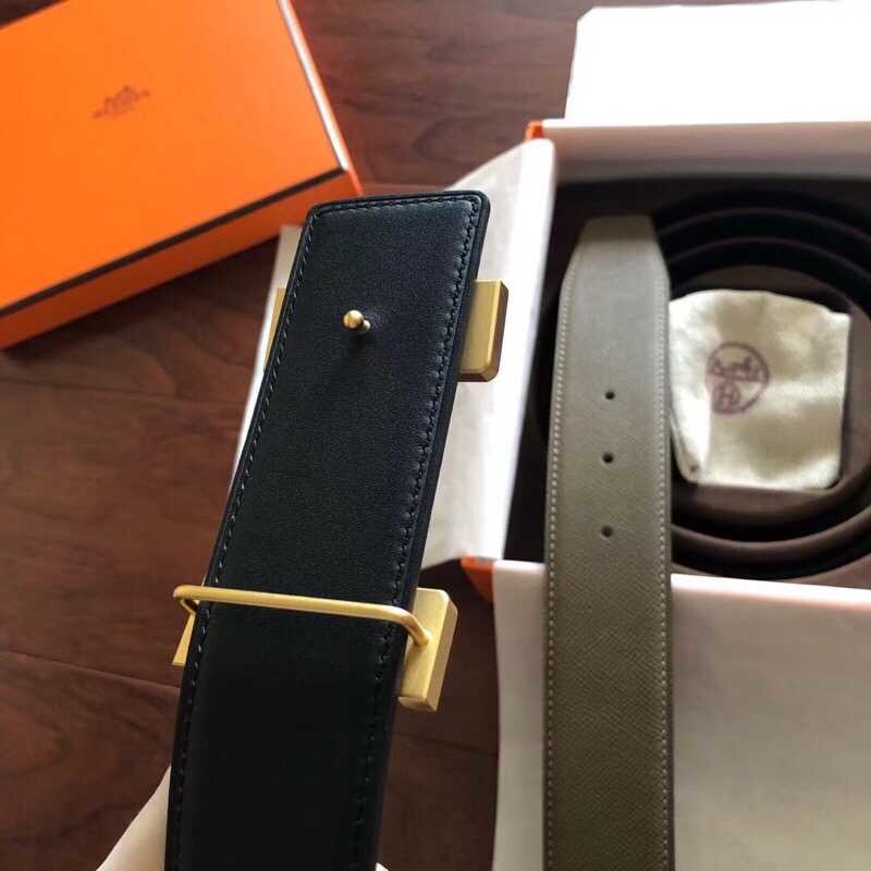 Hermes Men s belt with gold and silver metal buckle 4.2cm