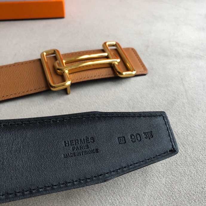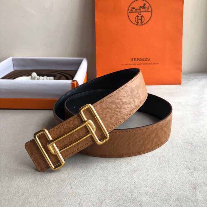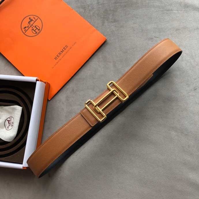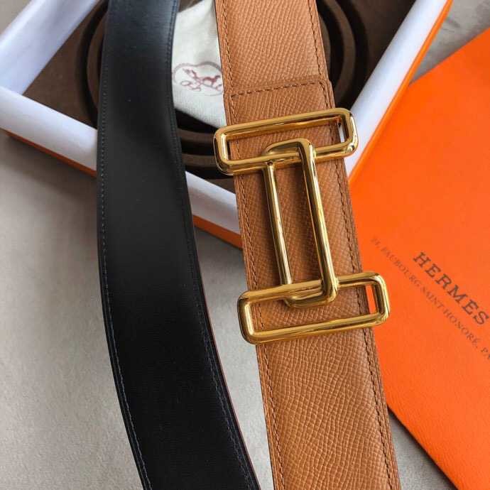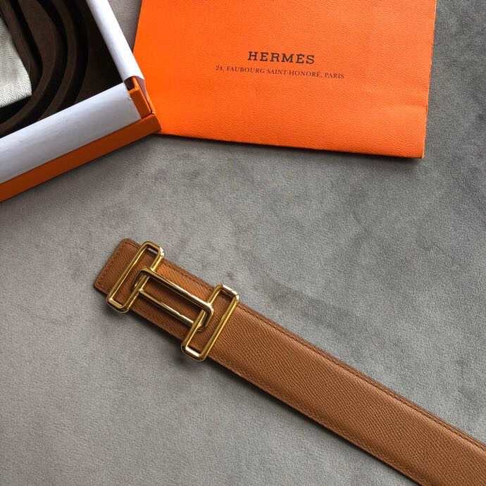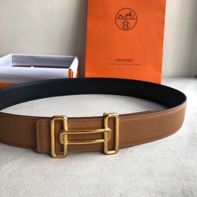 Hermes Stainless steel H pattern metal buckle & cowhide embossed crocodile pattern 38mm belt