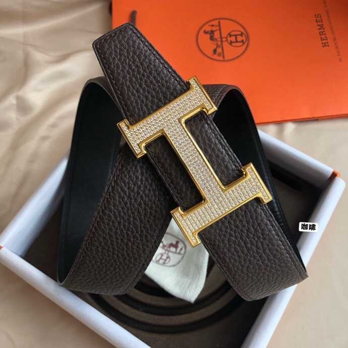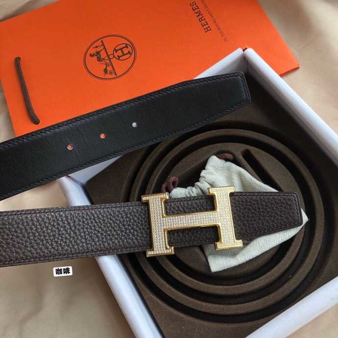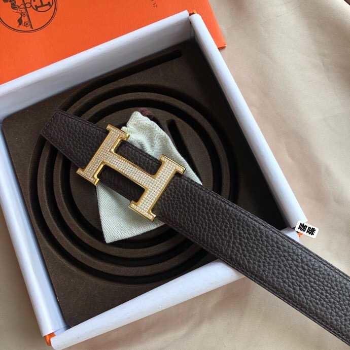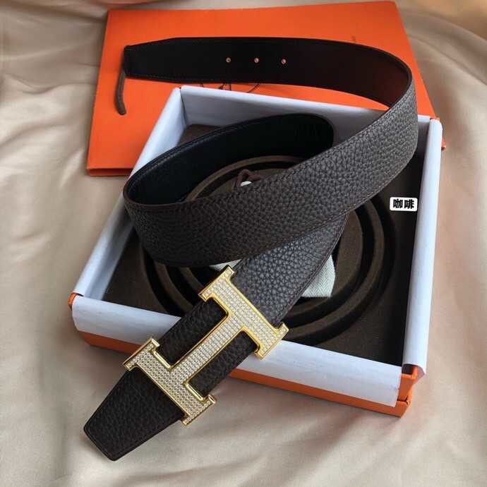 Hermes Stainless Steel H Full Rhinestone Bottom Leather Men s 3.8cm Belt
