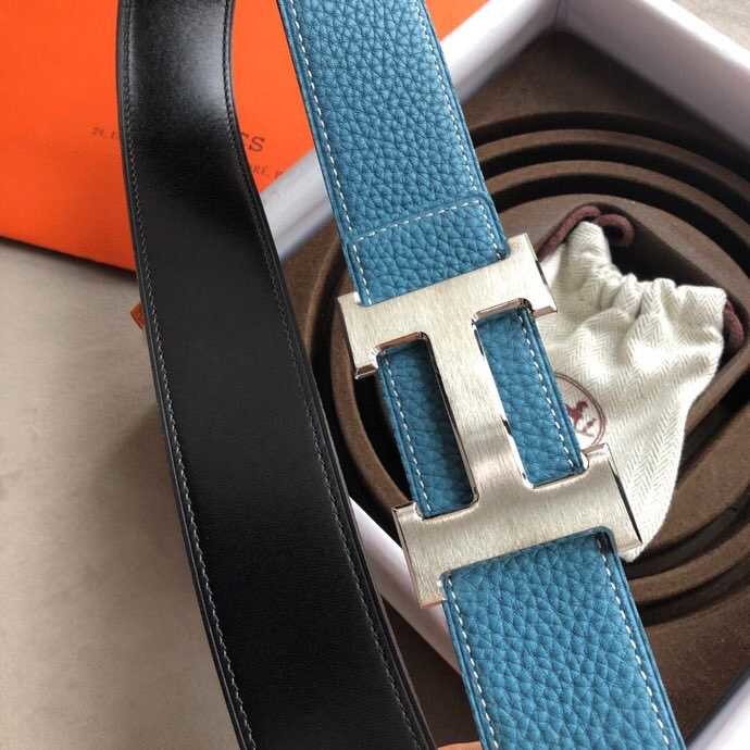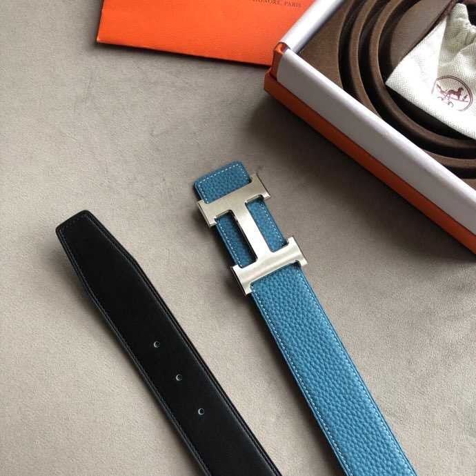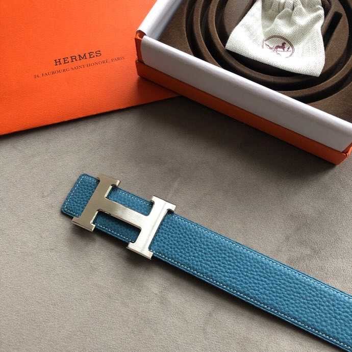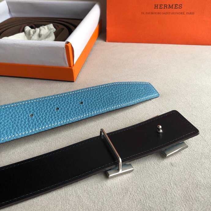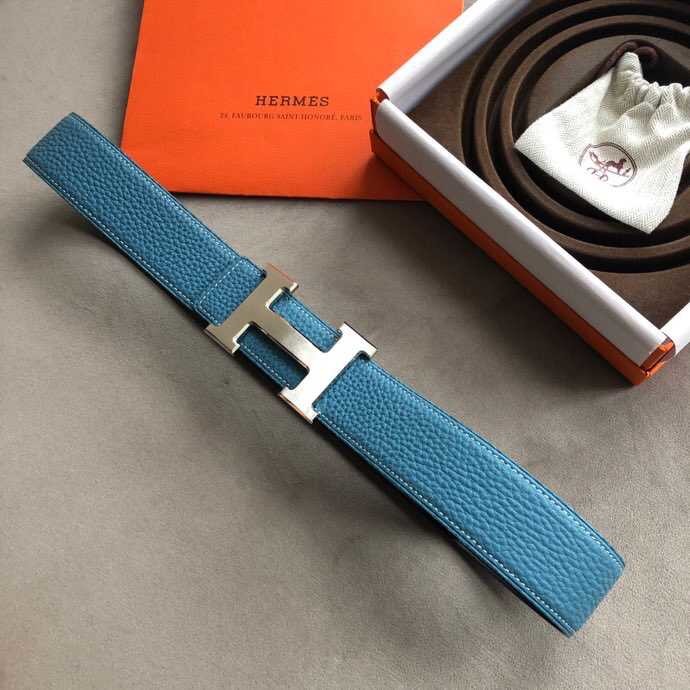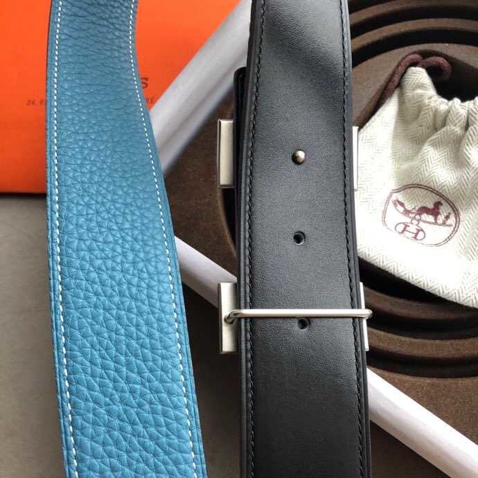 Hermes Classic stainless steel H metal buckle leather grained men s 3.8cm belt