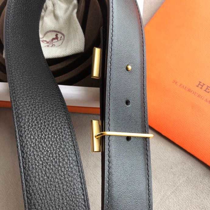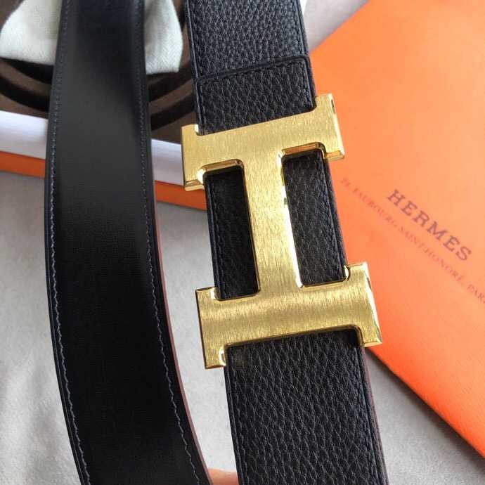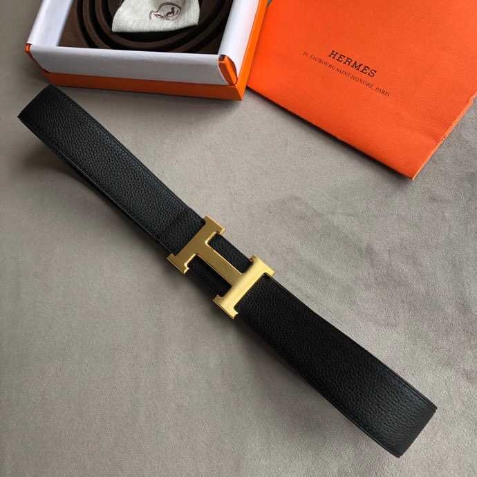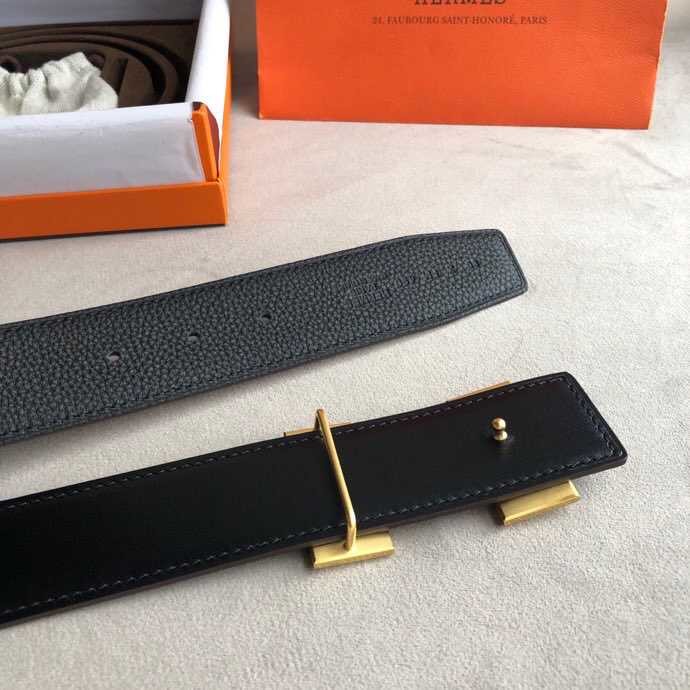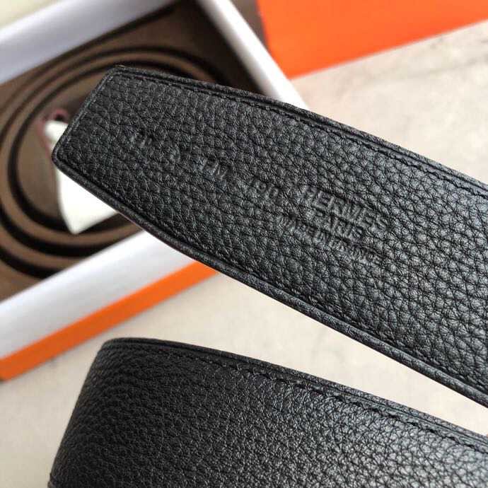 Hermes Classic stainless steel H metal buckle leather grained men s 3.8cm belt
