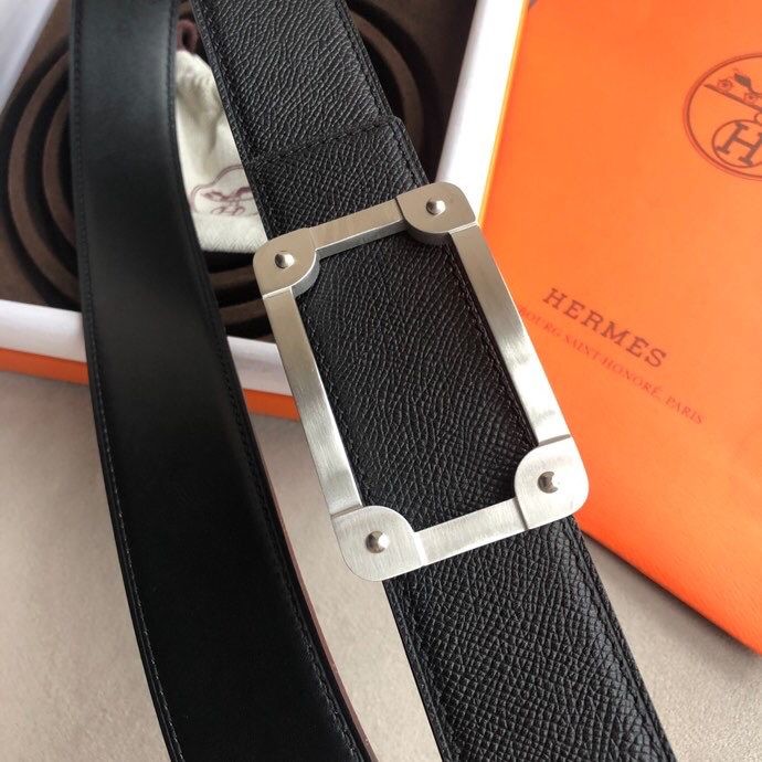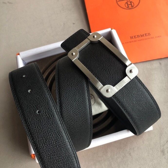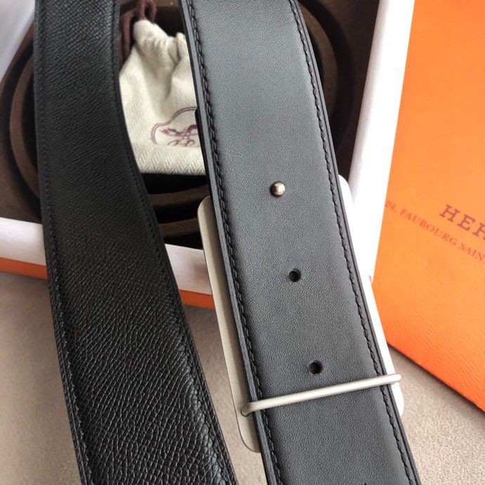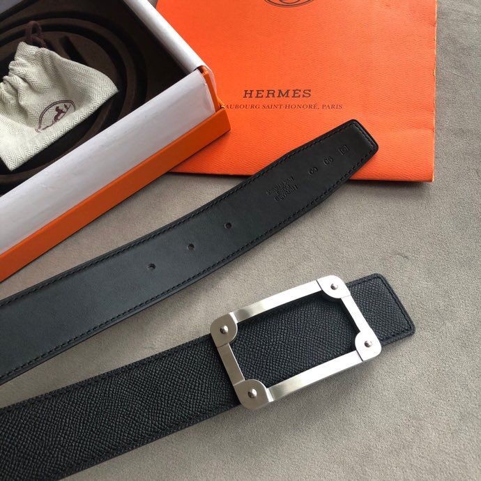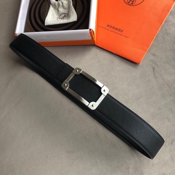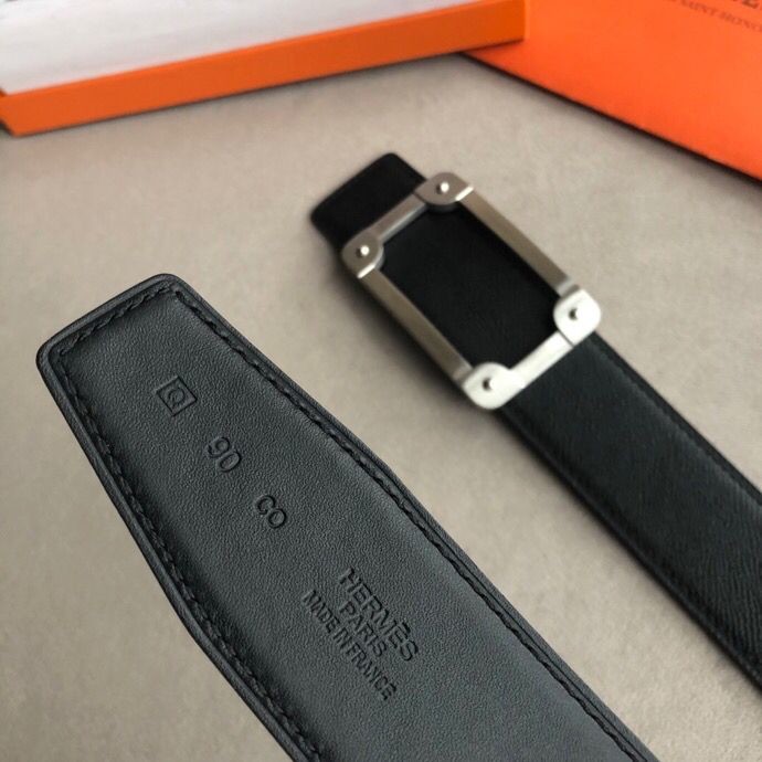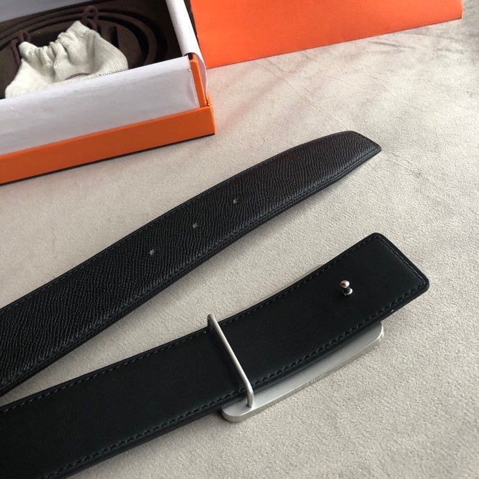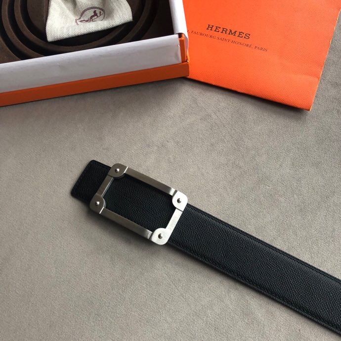 Hermes Stainless steel box hanging buckle leather men s 3.8cm belt