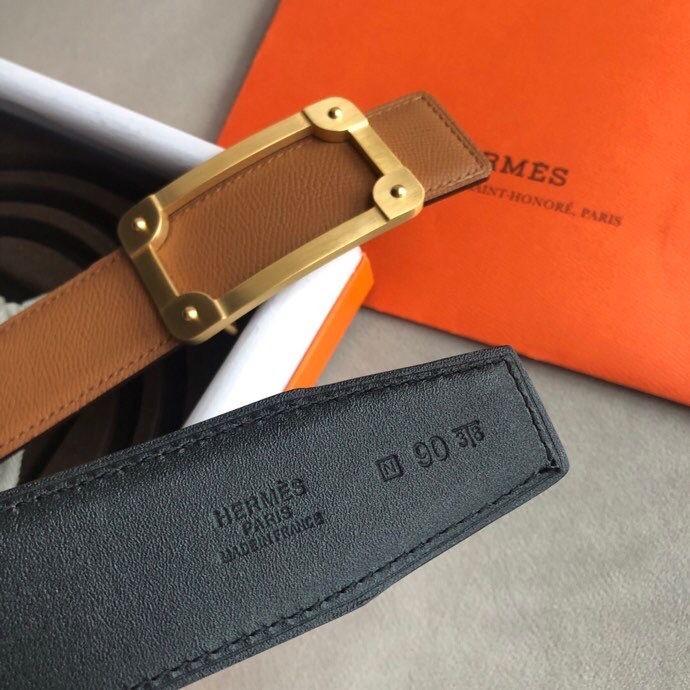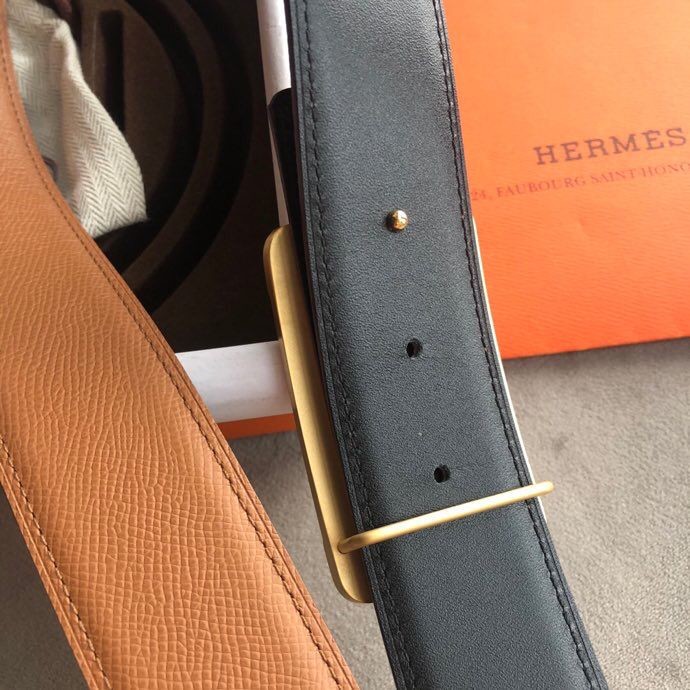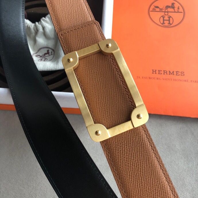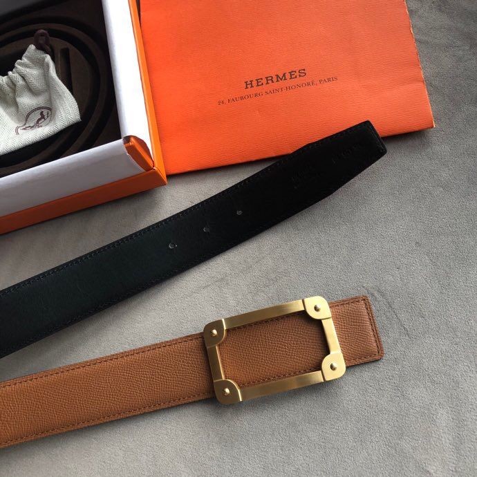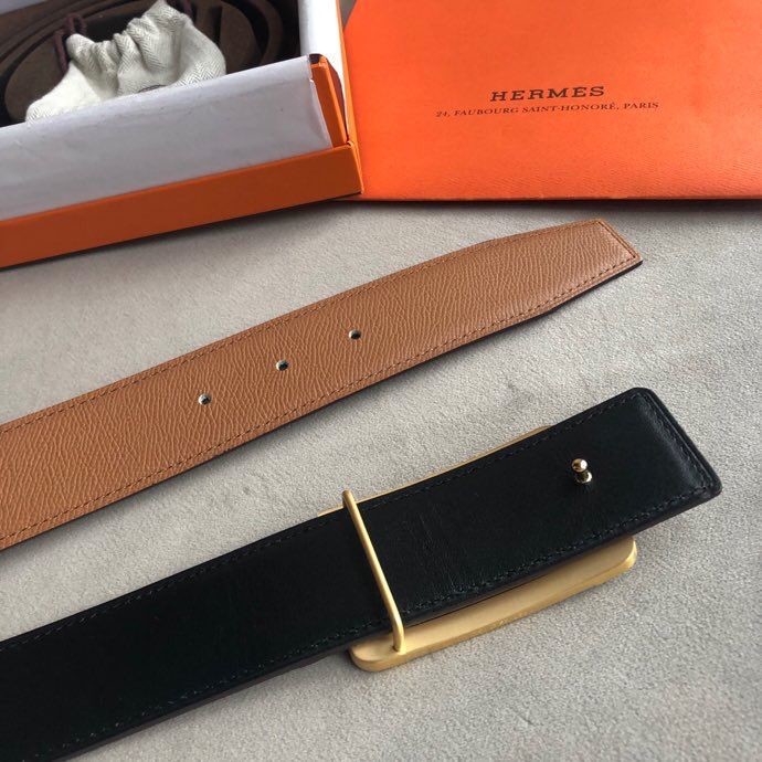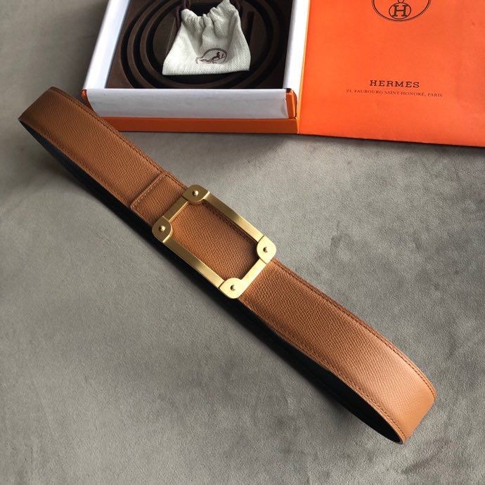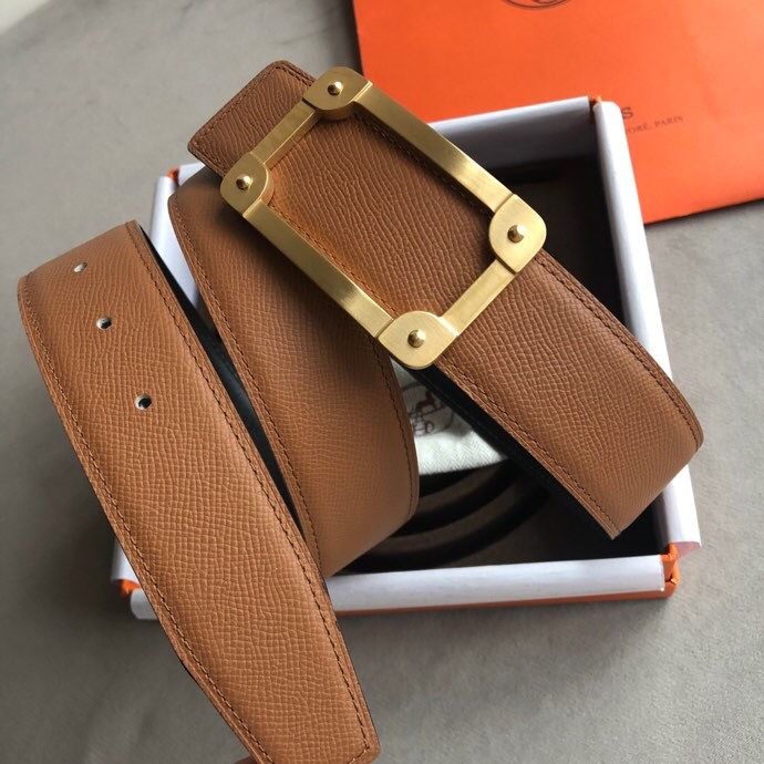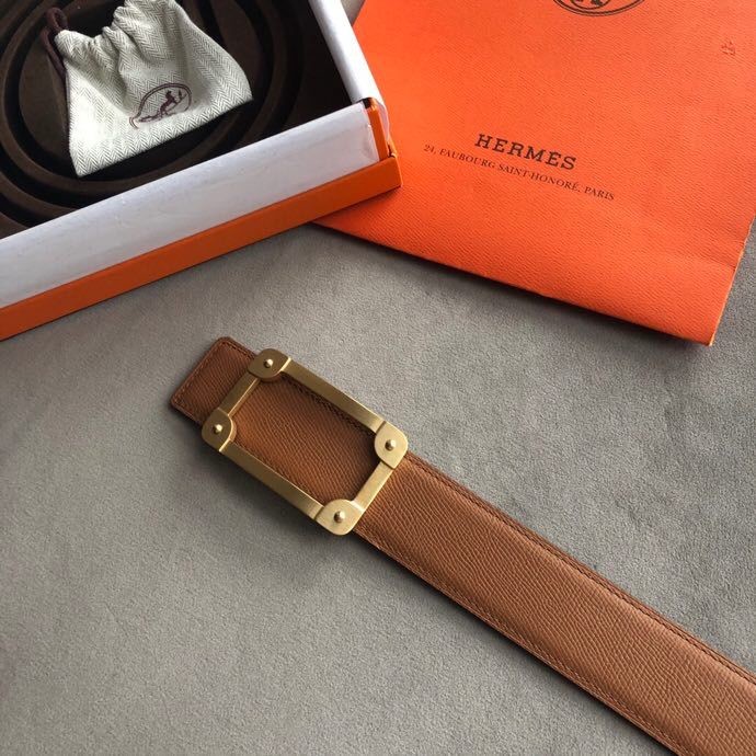 Hermes Stainless steel box hanging buckle leather men s 3.8cm belt