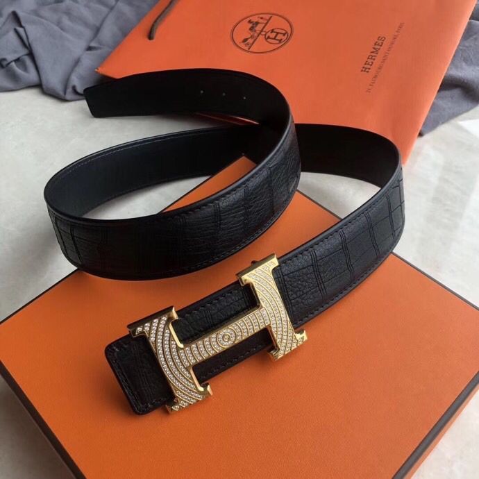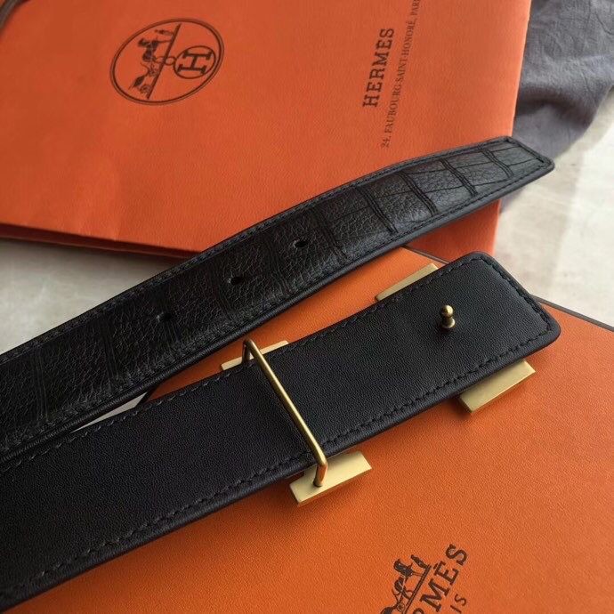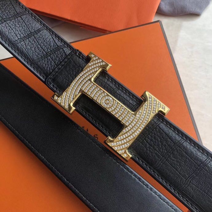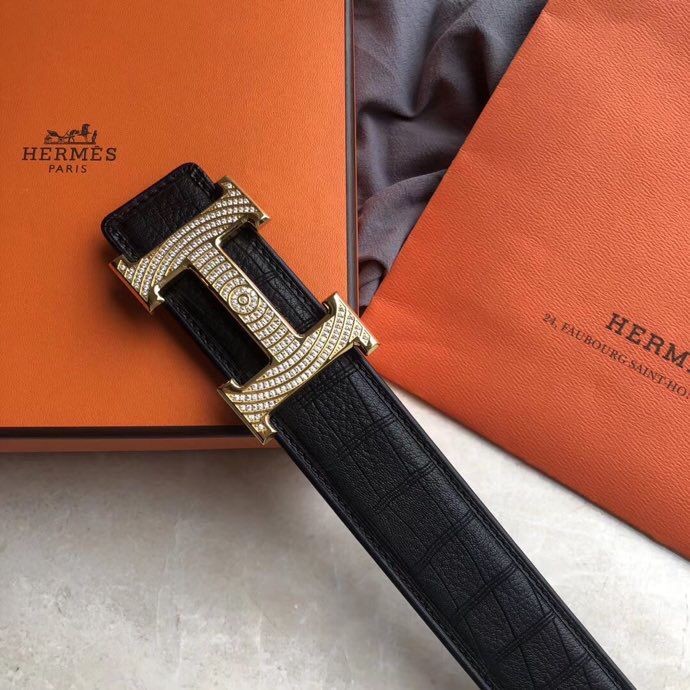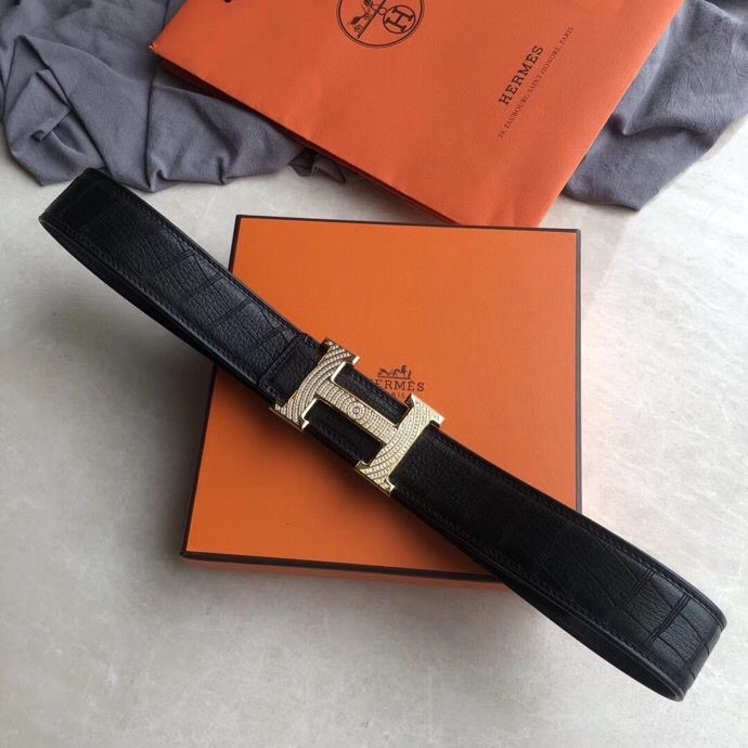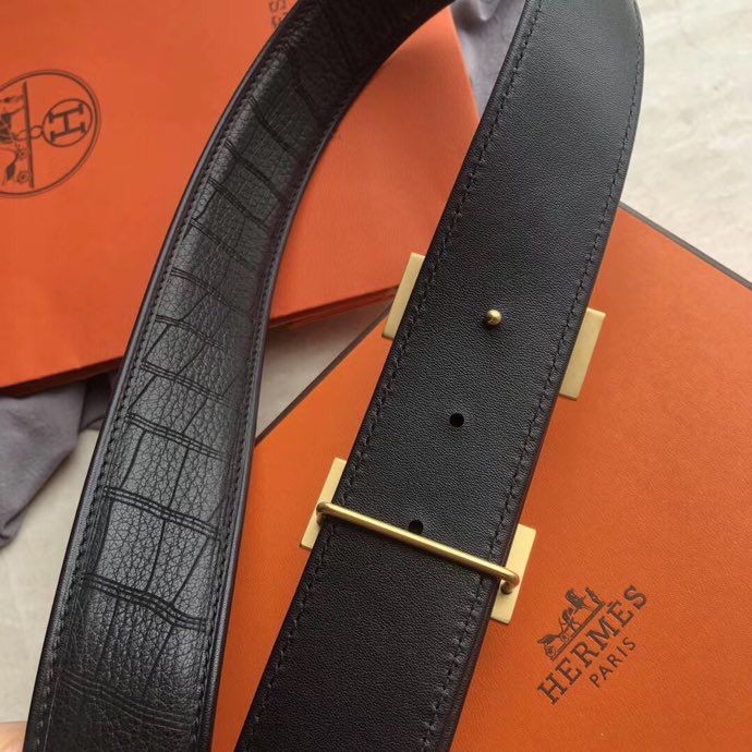 Hermes Stainless steel H buckle deerskin men s 3.8cm belt