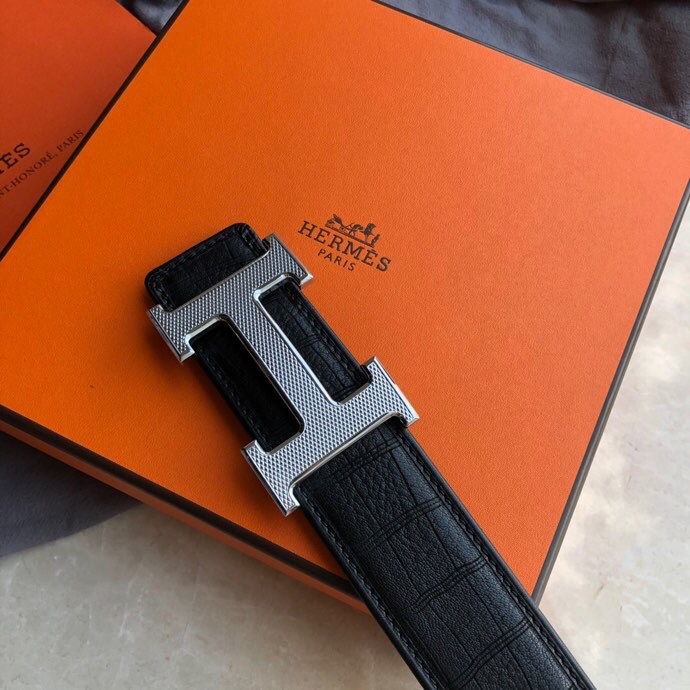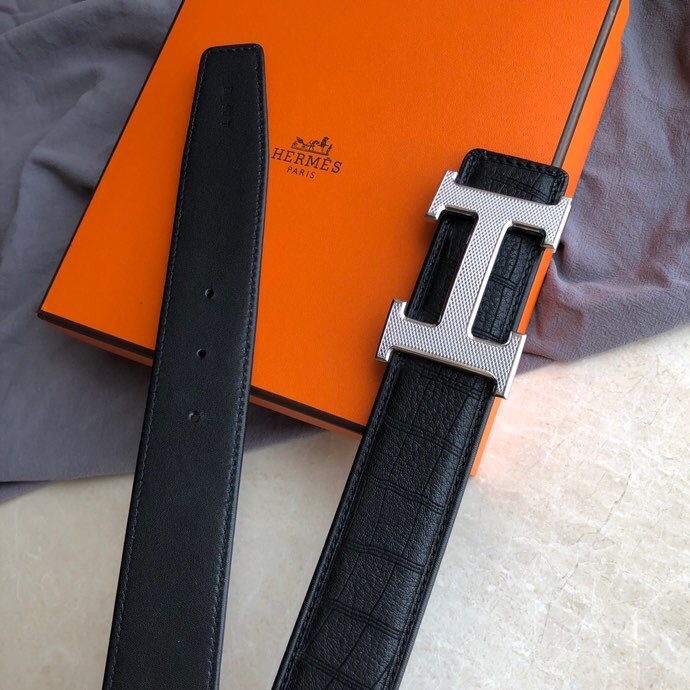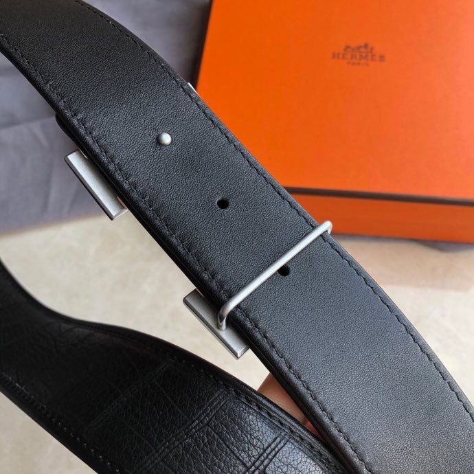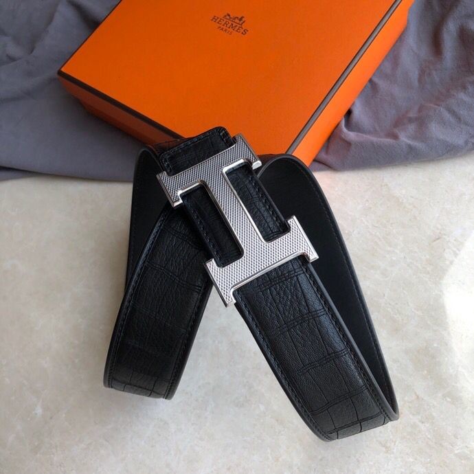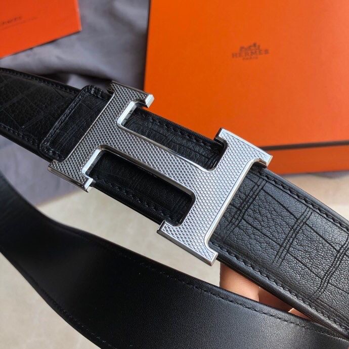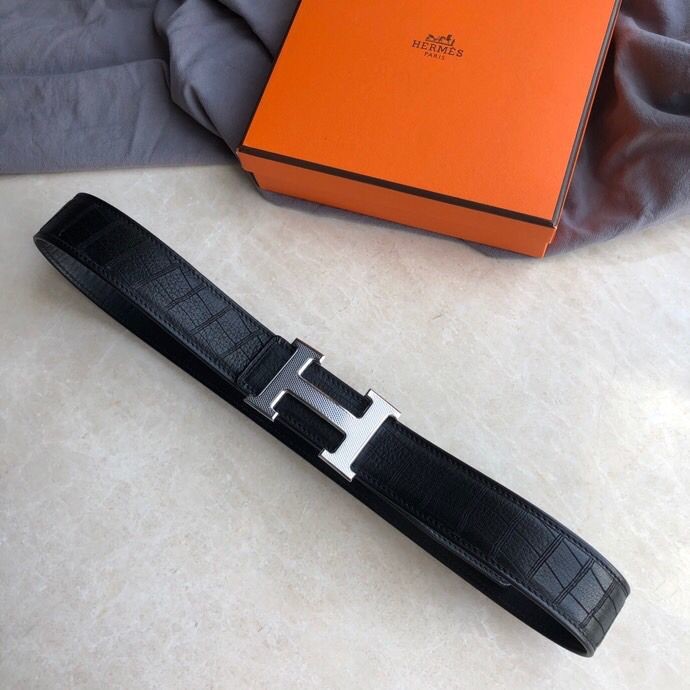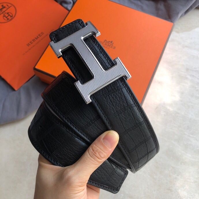 Hermes Stainless steel H pattern metal buckle & cowhide embossed crocodile pattern 38mm belt