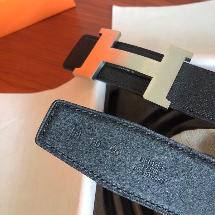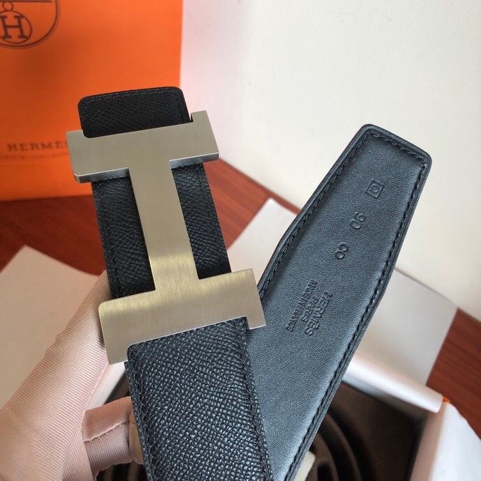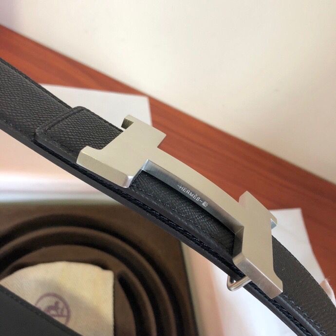Hermes Stainless steel four-corner metal buckle leather men s 3.8cm belt