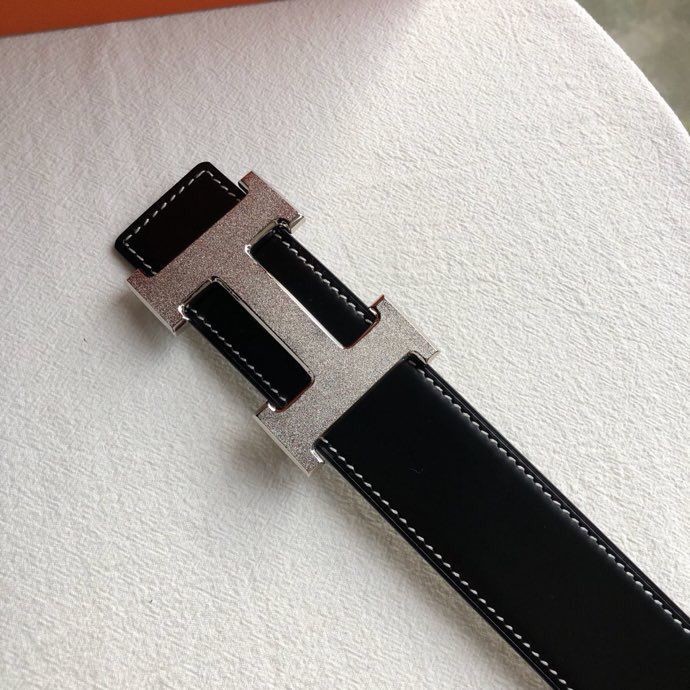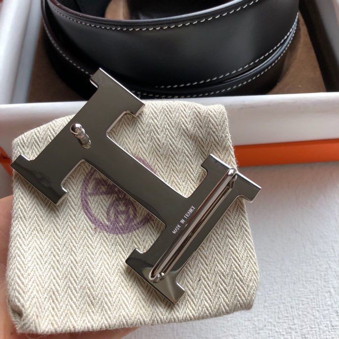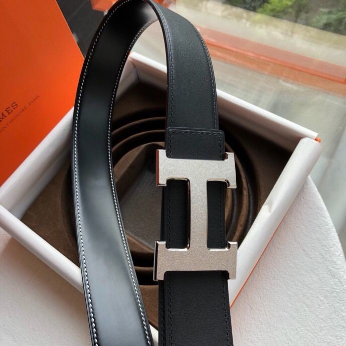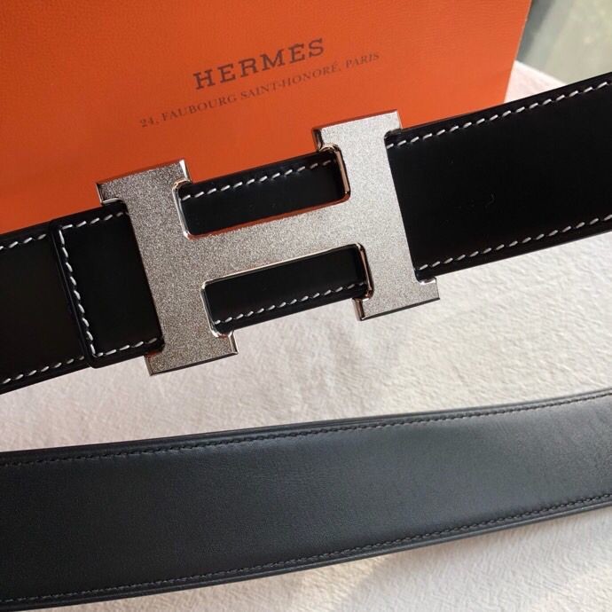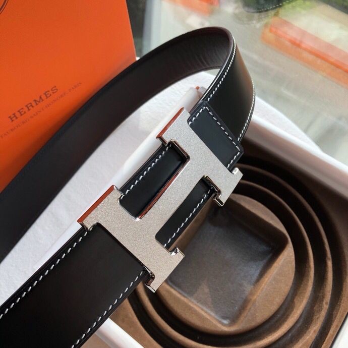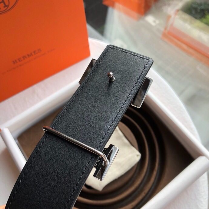 Hermes Reversible leather men s 3.8cm belt with stainless steel metal buckle