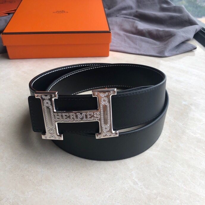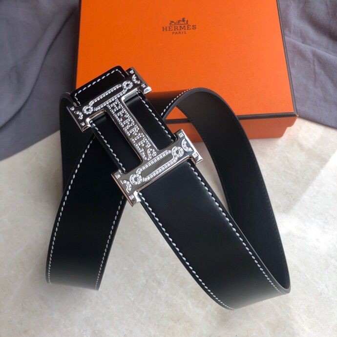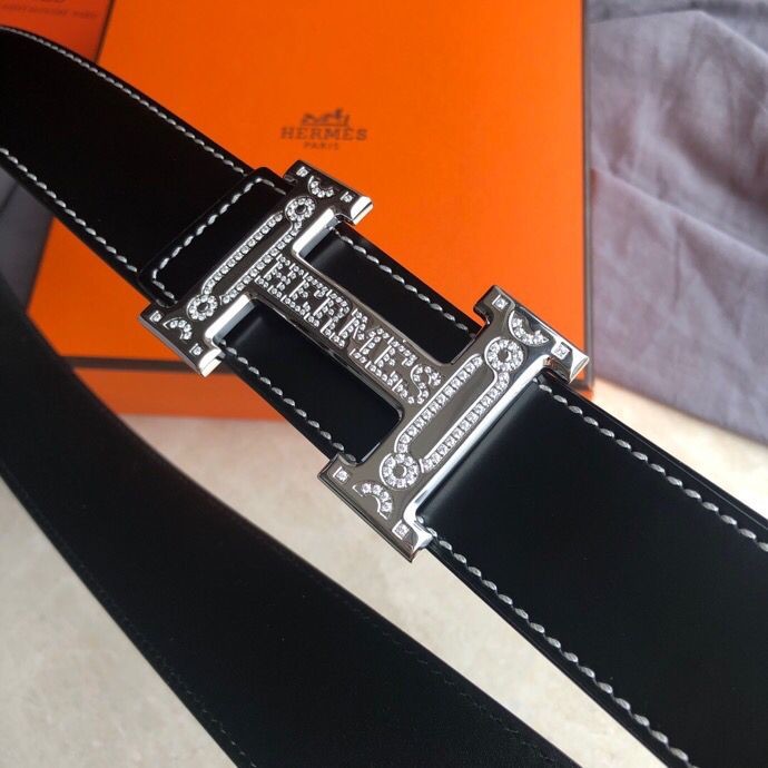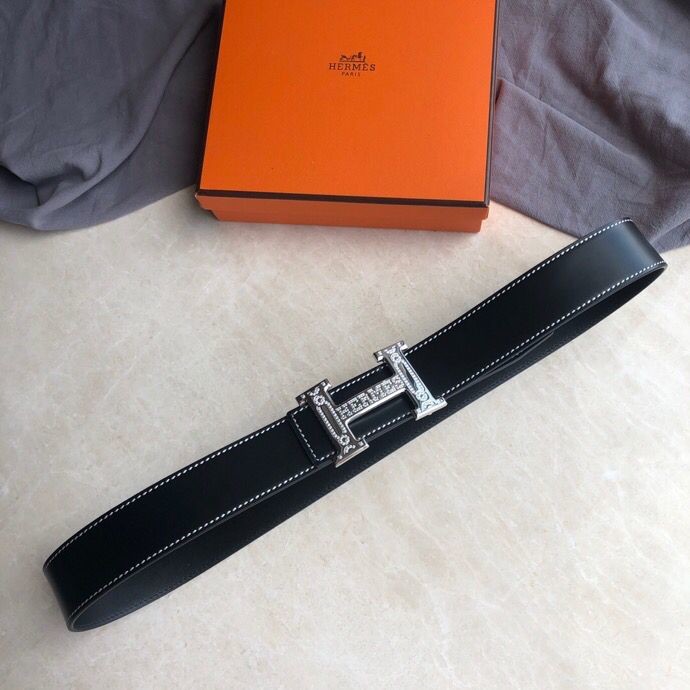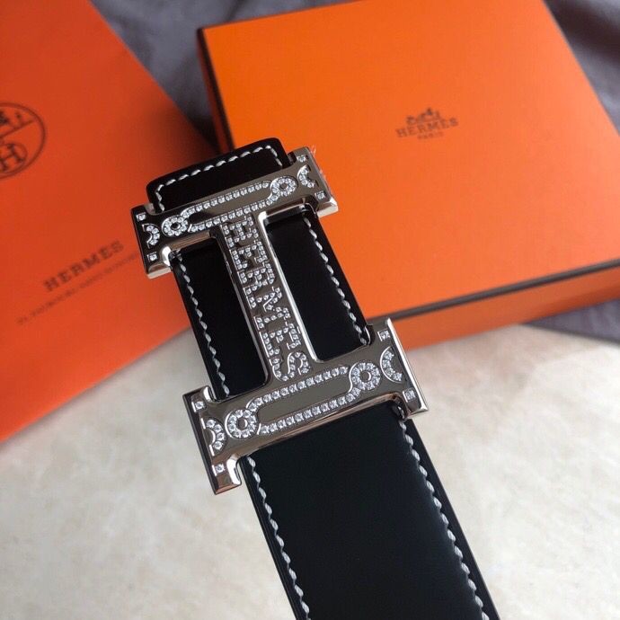 Hermes Stainless Steel Full Rhinestone Reversible Leather Men s 3.8cm Belt