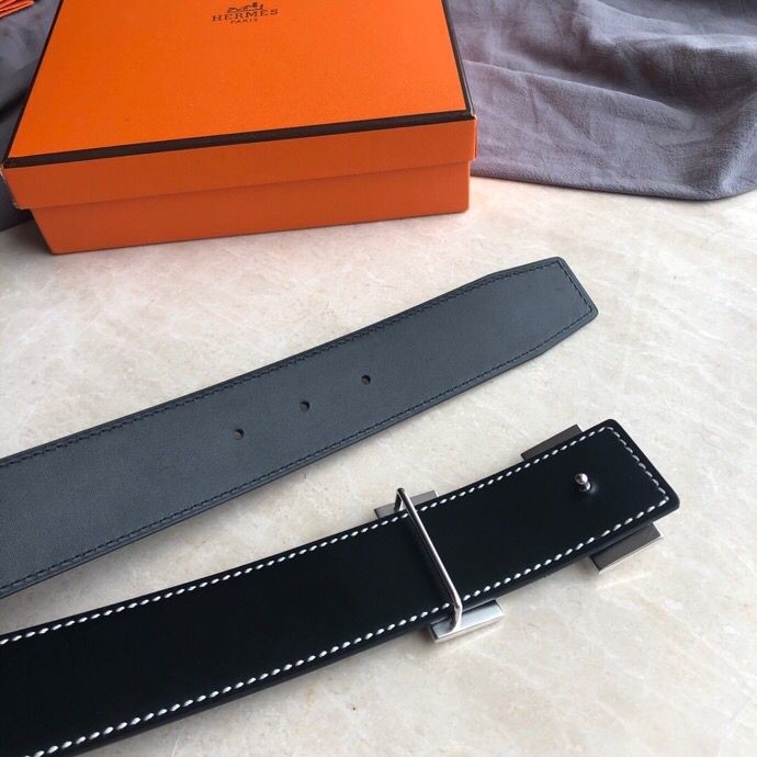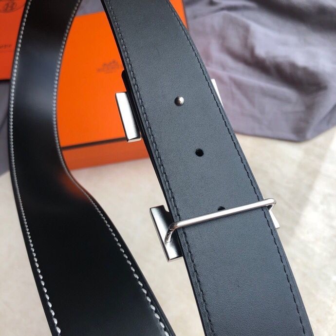 Hermes 3.8cm Reversible leather belt with stainless steel H buckle