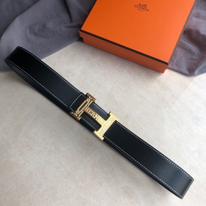 Hermes Stainless steel H pattern metal buckle & cowhide embossed crocodile pattern 38mm belt