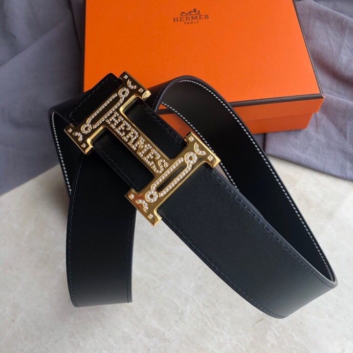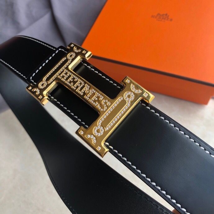 Hermes Stainless Steel Full Rhinestone Reversible Leather Men s 3.8cm Belt